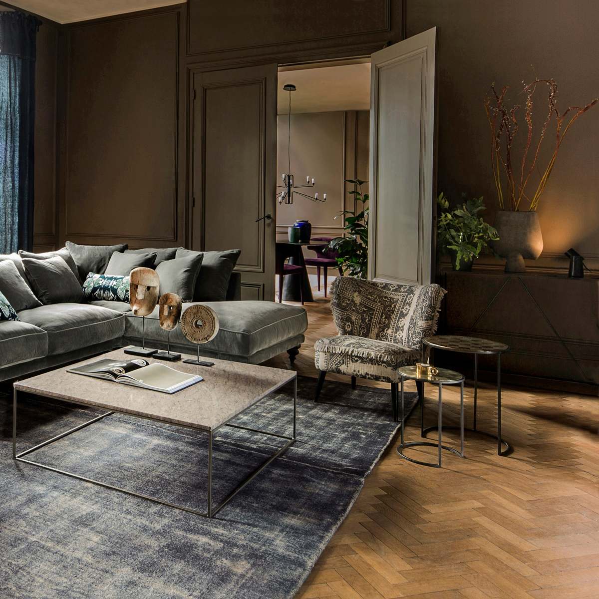 Heal's Tailor Left Hand Facing Corner Sofa Broad Weave Tin Natural Feet - Heal's UK Furniture