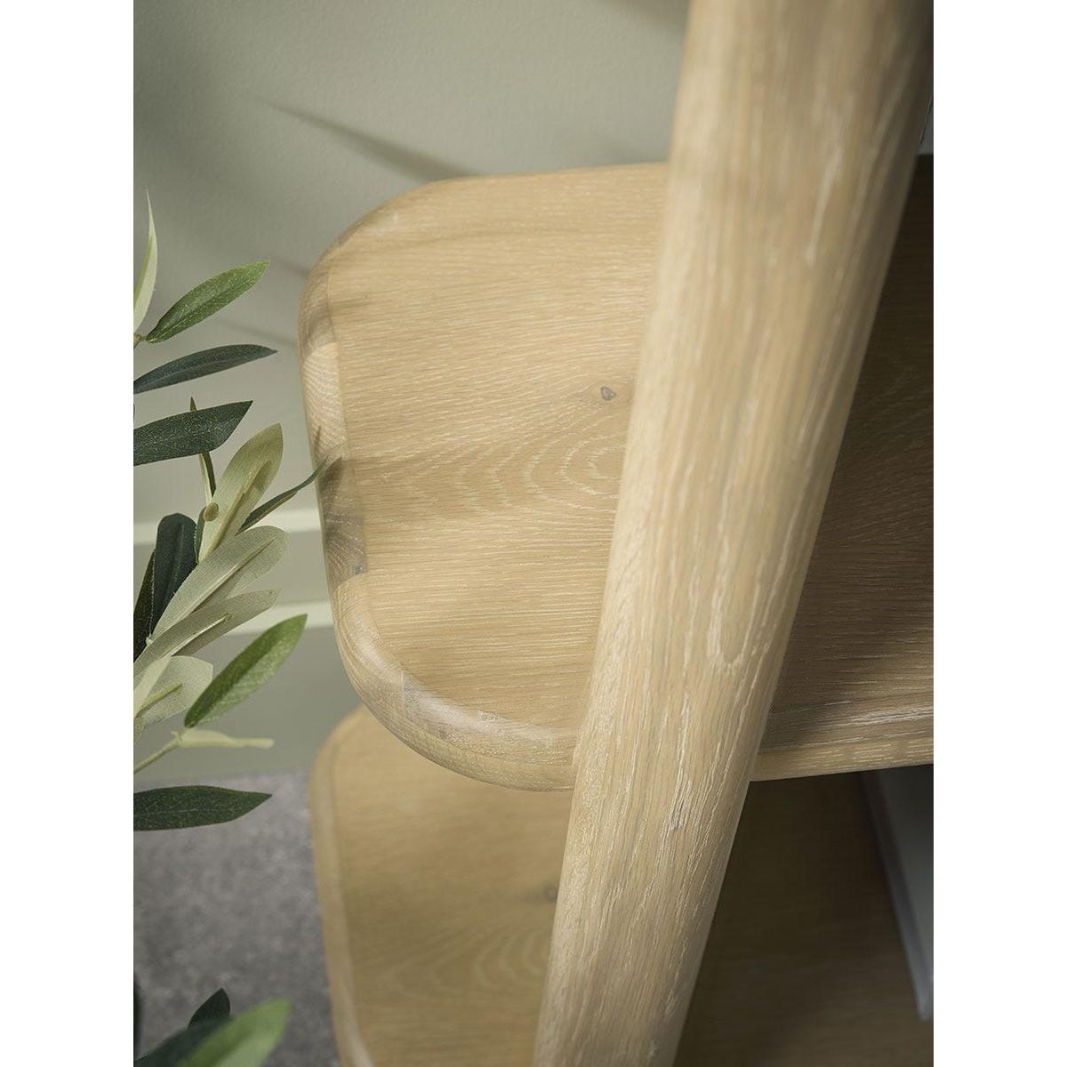 Crafted in solid white oak, our Edvin range is an impressive collection of timeless furniture with bold outlines and strong design features such as the statement crossed table legs. The range includes a comprehensive set of pieces suited to living room, dining room or kitchen. The bookshelf has a contemporary asymmetric design and offers plenty of storage space for books or styling favourite decorative items.