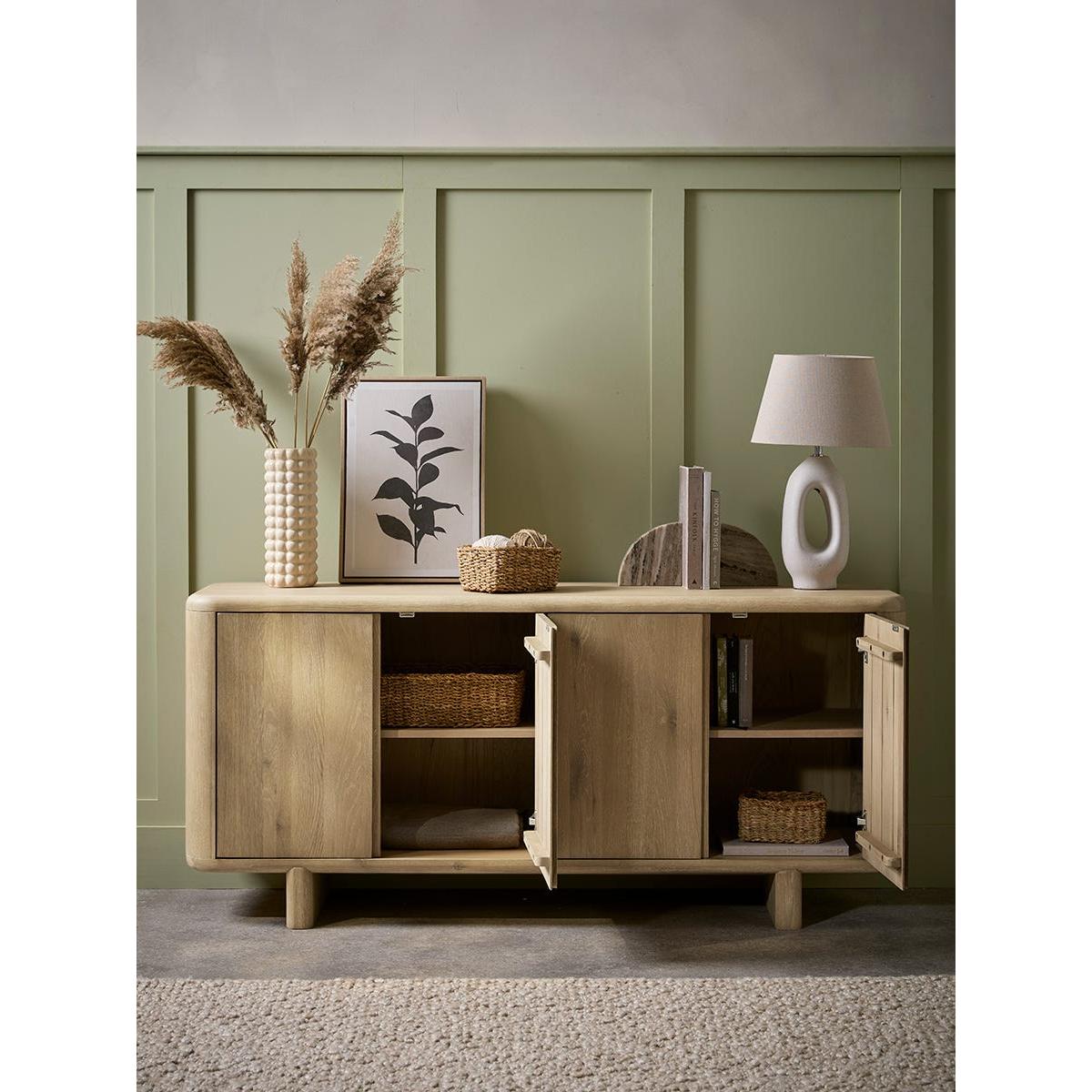 I love the Edvin sideboard for its clean lines and versatile timber finish, making it a great anchor piece in both modern and more traditional interiors. It works particularly well in neutral-toned spaces, helping to add warmth and texture without overwhelming the room. Practical styling tips include using top surfaces for a mix of decorative accesories and lamps, while keeping the inside organised with baskets or boxes for a clutter-free look. It’s perfect for living rooms, dining areas, or hallways, providing ample storage while maintaining a sleek aesthetic. Its understated design makes it easy to blend in with various colour schemes and furniture styles, ensuring it remains a timeless addition to your interior.