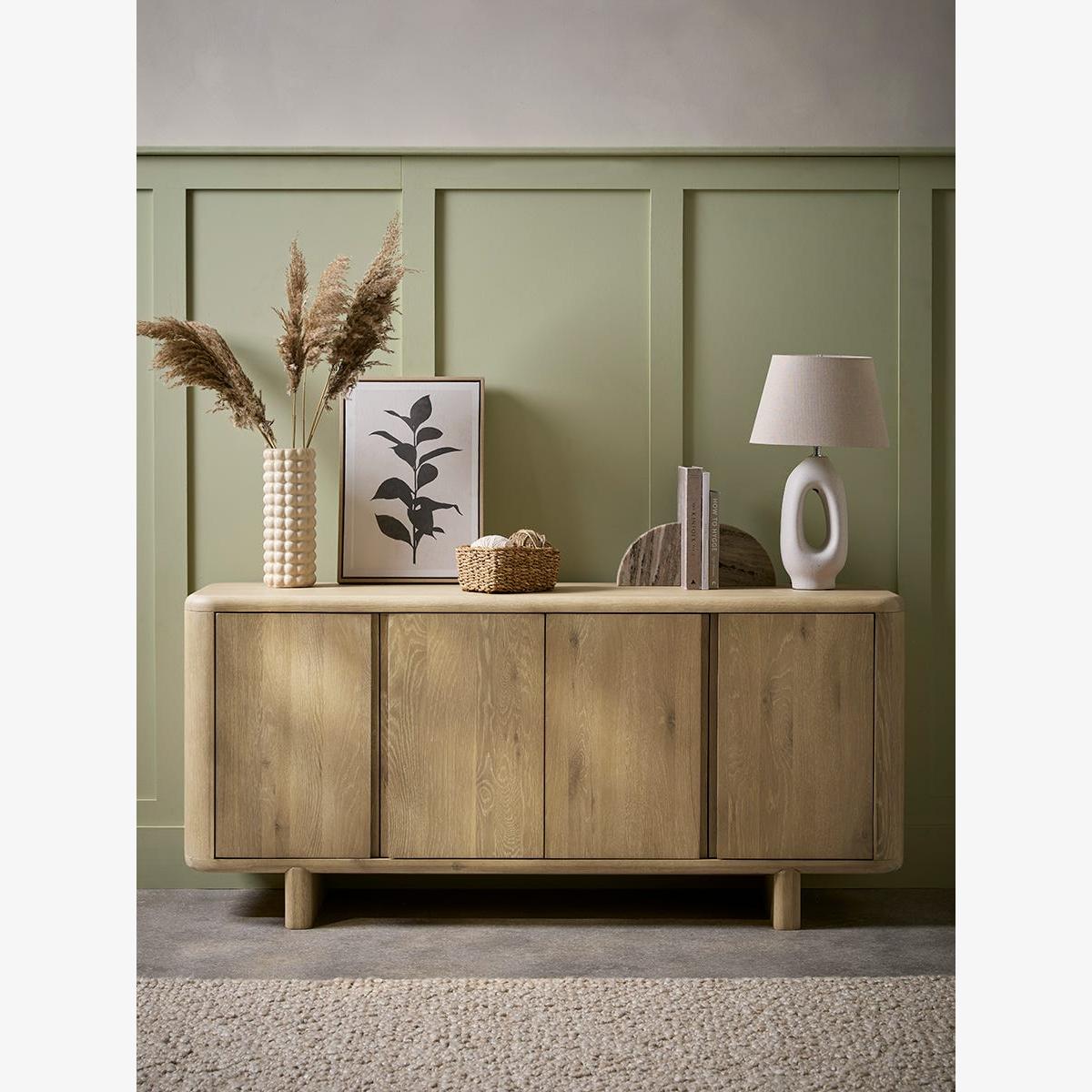 Versatile and offering plenty of storage, our Edvin sideboard has a simple structure that is enhanced with soft, curved edges, offering a modern look to this otherwise simple structure. Crafted from a solid white oak, this sideboard is timeless and sturdy, working wonderfully in a variety of homes and interior styles.