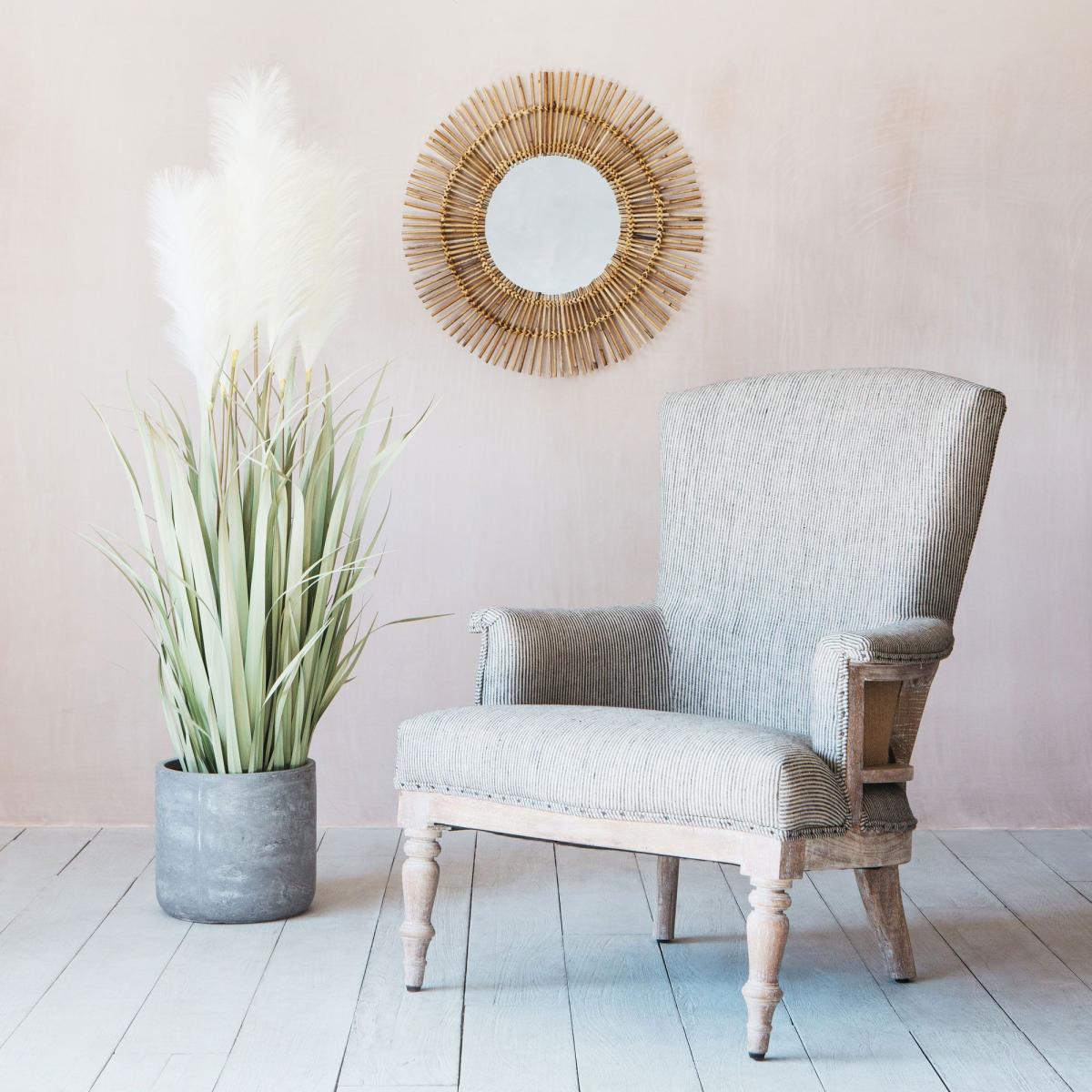 This grand stately chair will have you feeling like royalty with a high back and elegant linen seating. Dress to impress by styling with plush embroidered cushions.