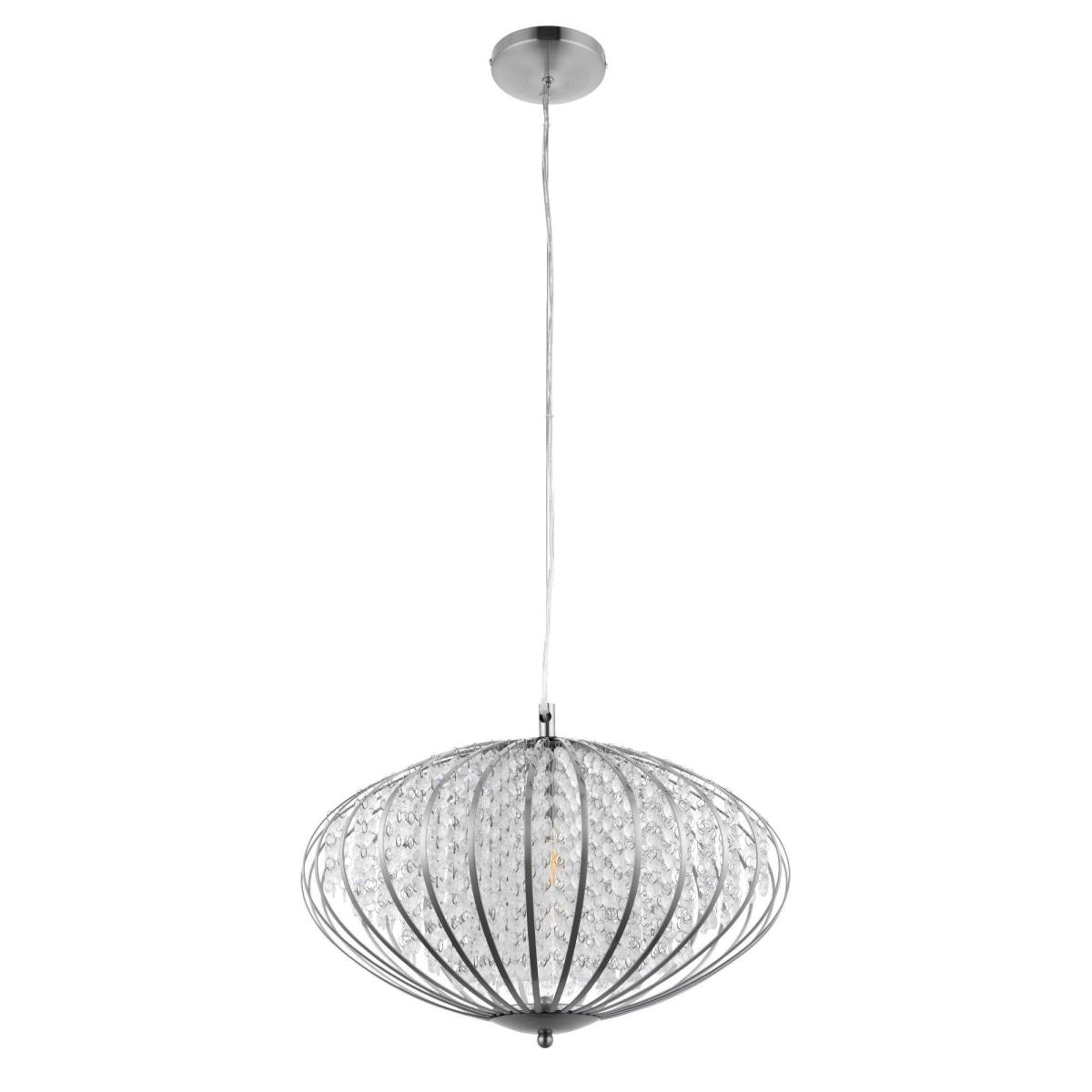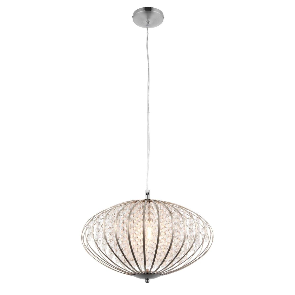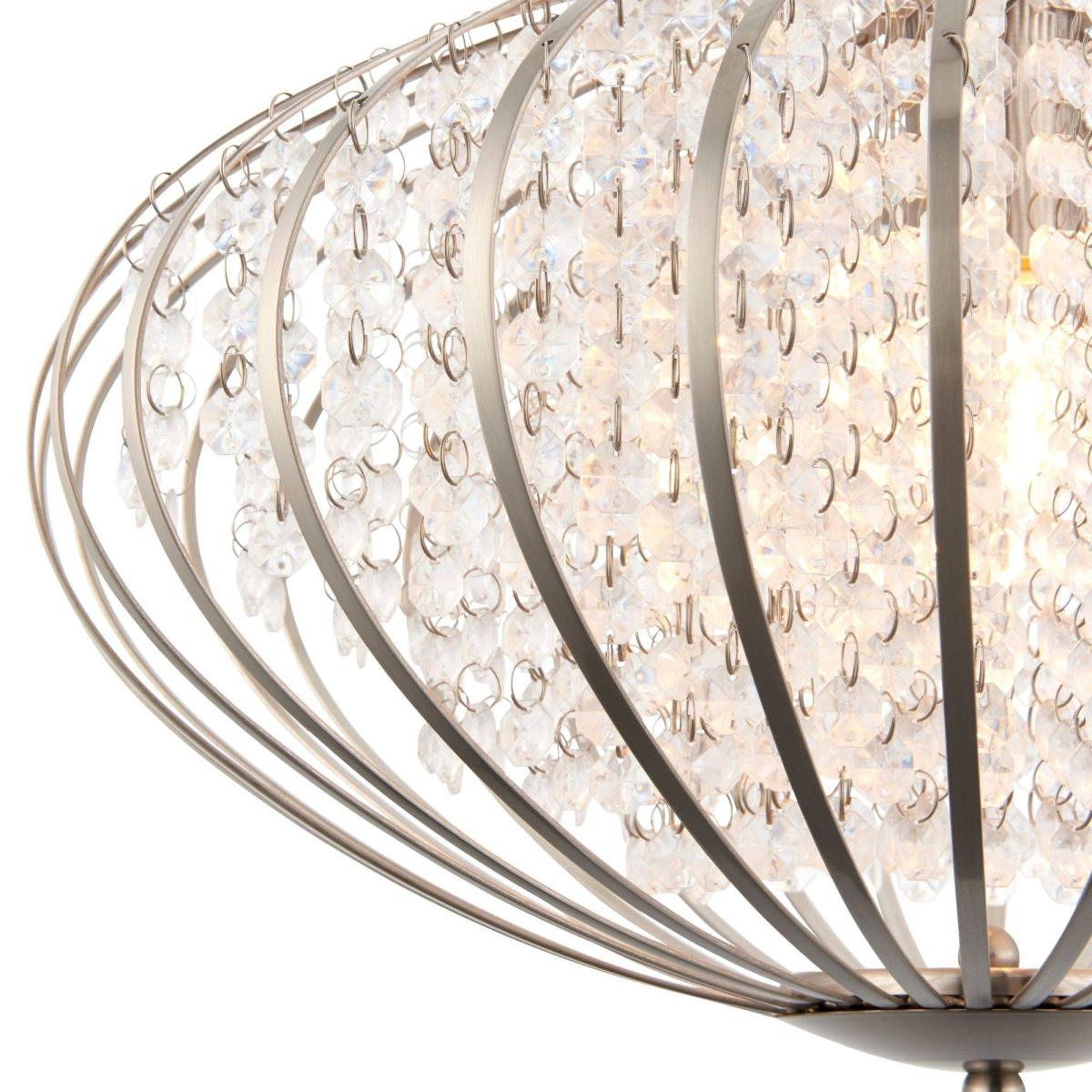 Stunning ceiling pendant light boasting a satin nickel frame filled with crystal bead detailing. The Edwards ceiling light is a contemporary and stylish pendant fitting, exclusive to Pagazzi. Finished in a smooth, satin nickel, this unusual ceiling light is filled with hanging crystal droplets, creating a beautiful glisten when lit. Feature this statement piece in hallways, living rooms and dining areas for a beautiful focal point.