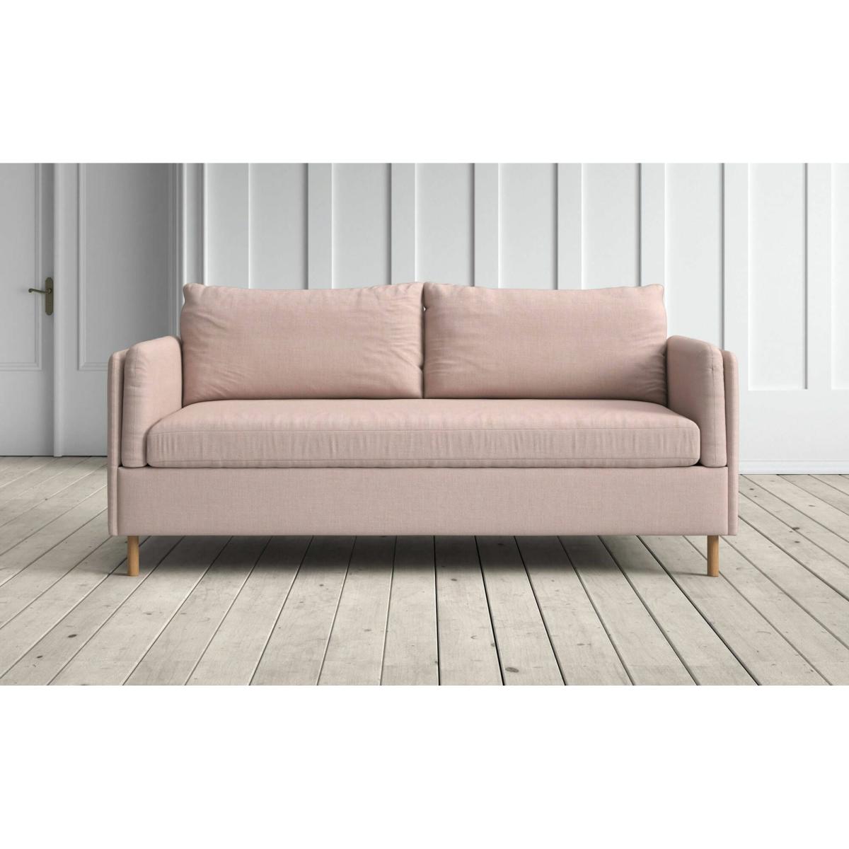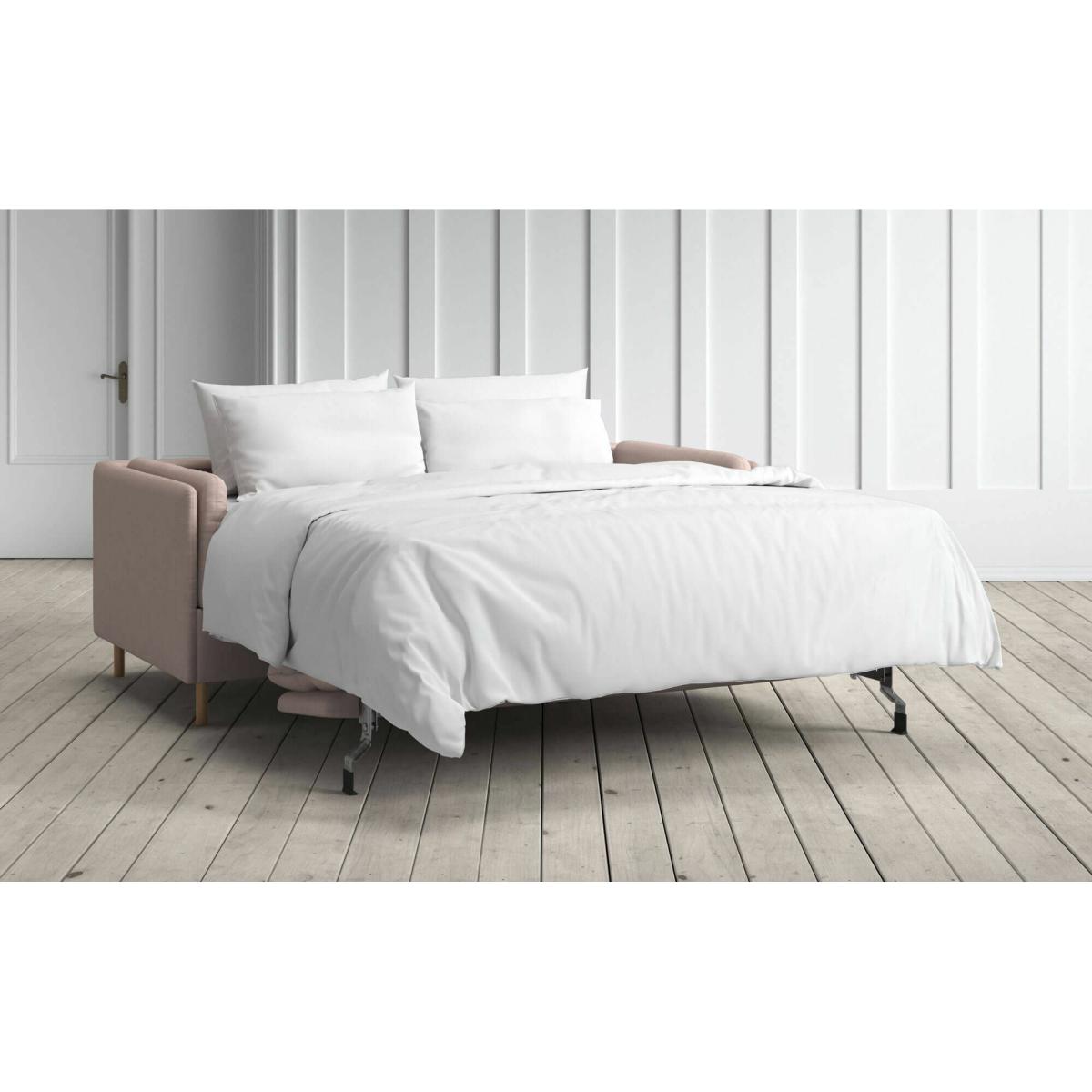 The Edwina sofa bed was created by Swedish furniture designer Dan Ihreborn, whose vision was to blend space-saving practicality with modern style. With its narrow armrests and low frame, the sofa bed’s compact design means it will easily fit into smaller guest rooms. To transform the hand-upholstered Edwina from sofa to bed, simply lift the back of the frame up and over on its smooth mechanism. Once unfolded, it will reveal a cold foam mattress. The removeable cushions are zipped to the frame, so you can be sure that they’ll remain in place when you transition from sofa to bed. Dimensions Height: 85cm Width (2.5-seater): 190cm Width (3-seater): 210cm Depth: 100cm Seat height: 49cm Seat depth: 55cm Height including back cushion: 85cm Height when extended: 67cm Extended length: 220cm Mattress thickness: 12cm Mattress length: 210cm Mattress width (2.5-seater): 140cm Mattress width (3-seater): 160cm Weight: 121kg