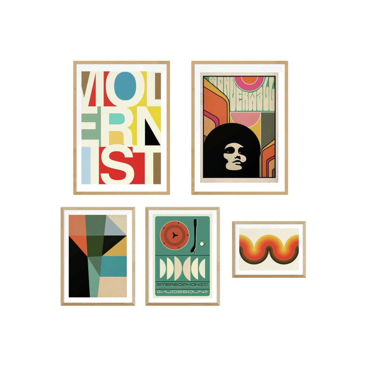 Add some colour and style to your home with this beautiful retro gallery wall set by Delta Nova. Printed with a giclee, fine art printing process on 210gsm, acid-free archival paper protecting product longevity for up to 70 years and framed in obeche wood with an acrylic glaze. This set comprises of two A2 (61.4 x 44 x 2.2cm), two A3 (44 x 31.7 x 2.2cm) and one A4 (23 x 31.7 x 2.2cm) framed print, all frames come ready to hang with a saw tooth hanging system. Published by East End Prints.