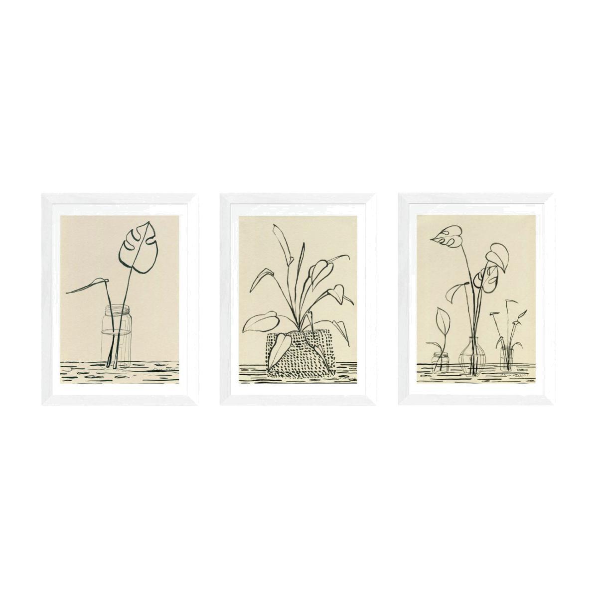 I love this triptych set - it adds a stylish yet understated botanical touch to any space. The monochrome line drawings lend themselves well to a range of interiors, from minimal modern schemes to boho-layered looks. The A2 size makes it a versatile focal point, especially when grouped over a sofa or sideboard, but it also works beautifully in smaller arrangements or as part of a gallery wall. To style it effectively, consider pairing with natural materials like wicker or wood, and keep surrounding decor simple to let the artwork shine. It’s a restrained, contemporary piece that can elevate both relaxed and polished interiors with little effort.
