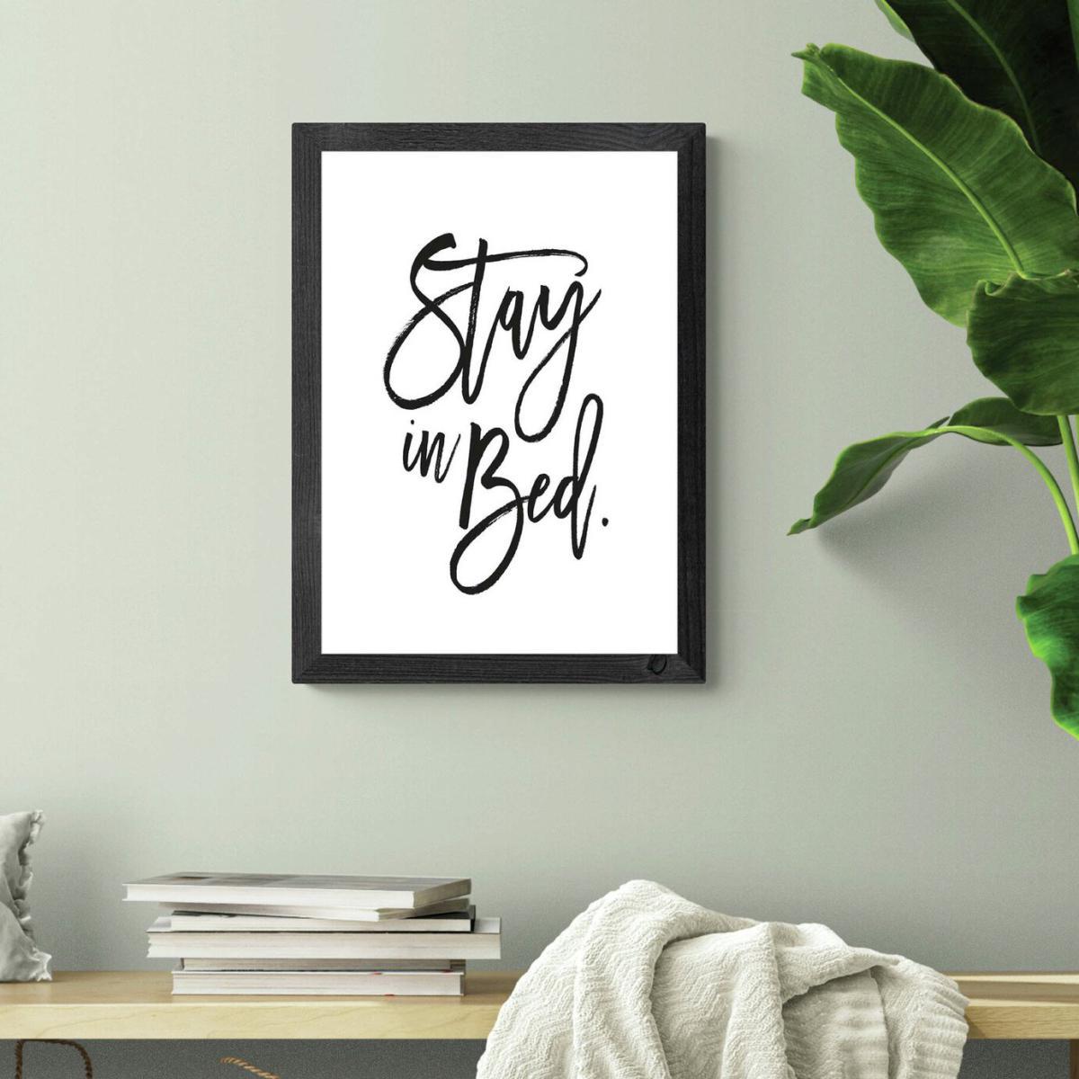 This framed print is a fun and relaxed piece that works particularly well in cosy, bedroom settings, especially those with a modern or minimalist vibe. I love how its monochrome palette makes it versatile to incorporate into a variety of colour schemes - pairing nicely with muted tones or bold accents. When styling, consider positioning it above a bed with simple bedding to keep the message front and centre, or use it as a focal point on a feature wall. To keep the look cohesive, try pairing it with other monochrome artwork or textured textiles. Practical tip: keep the frame sleek and understated so the message doesn’t compete with other decorative elements, making it a lighthearted yet stylish addition to any bedroom space.