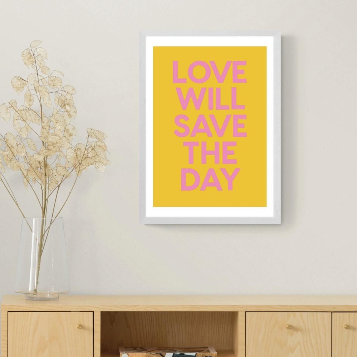 I love this print for its bold, uplifting message and contemporary colour palette. The bright yellow background combined with playful pink lettering makes it a versatile piece that can add character to modern or eclectic interiors. It works particularly well in living rooms, home offices, or even a kitchen where a touch of personality is desired. For styling, consider pairing it with minimalist furniture and neutral walls or creating a gallery wall by layering it with other artwork or framed photos. Its size is ideal for making a statement above a sofa or fireplace, and it's a practical choice for those looking to inject a sense of optimism and vibrancy into their space.