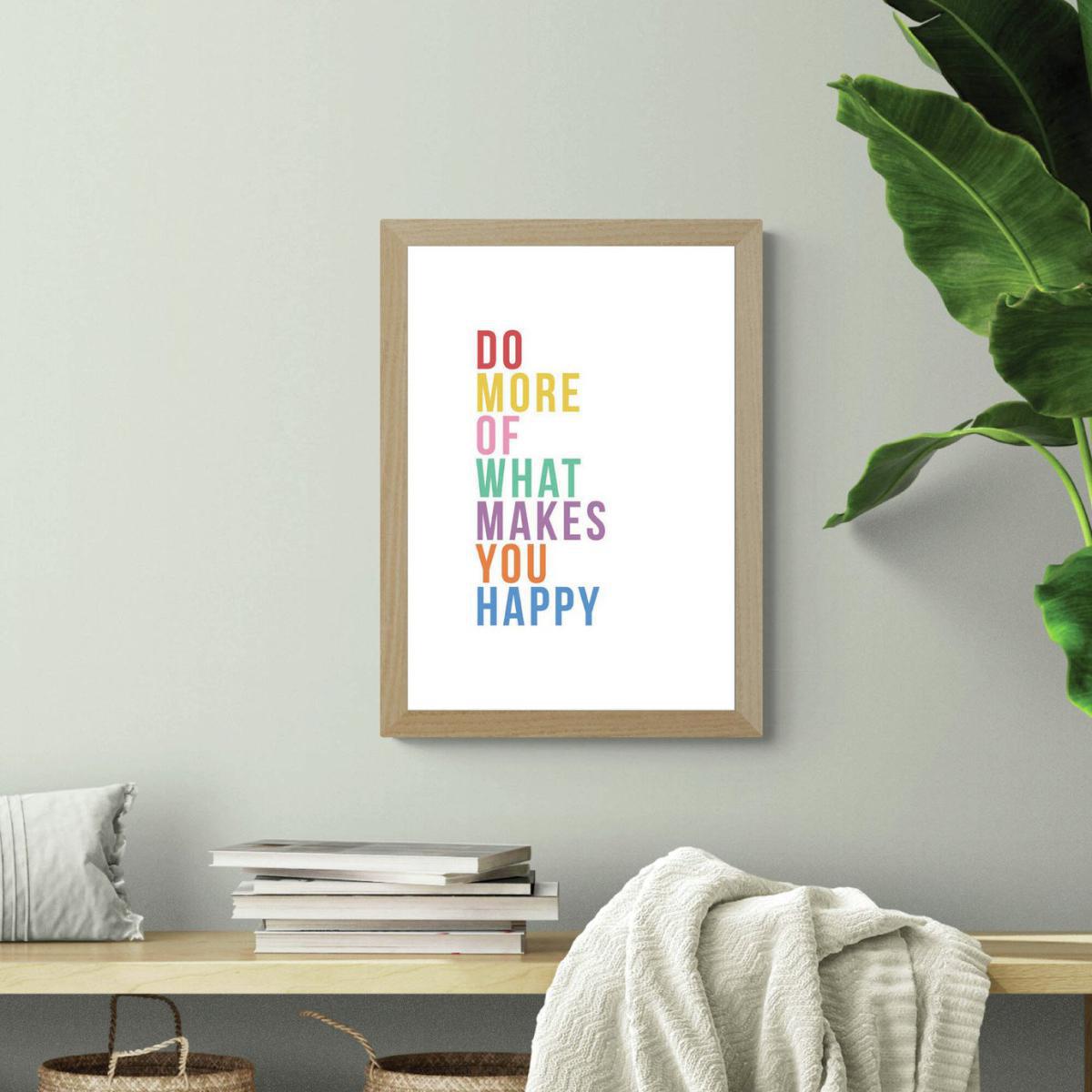 I love this print for its playful use of colour and positive message-it's an instant mood booster. The framed design in A3 makes it versatile for various interior styles, especially modern, minimalistic, and boho spaces. It works well above a sofa, in a home office, or as part of a gallery wall. For styling tips, consider pairing it with simple, colourful accessories or neutral backgrounds to let the print stand out. Using a natural wood or slim metal frame can complement its contemporary vibe, and placing it at eye level will ensure it's easily seen and appreciated. This piece is ideal for adding a cheerful, personal touch to your space.