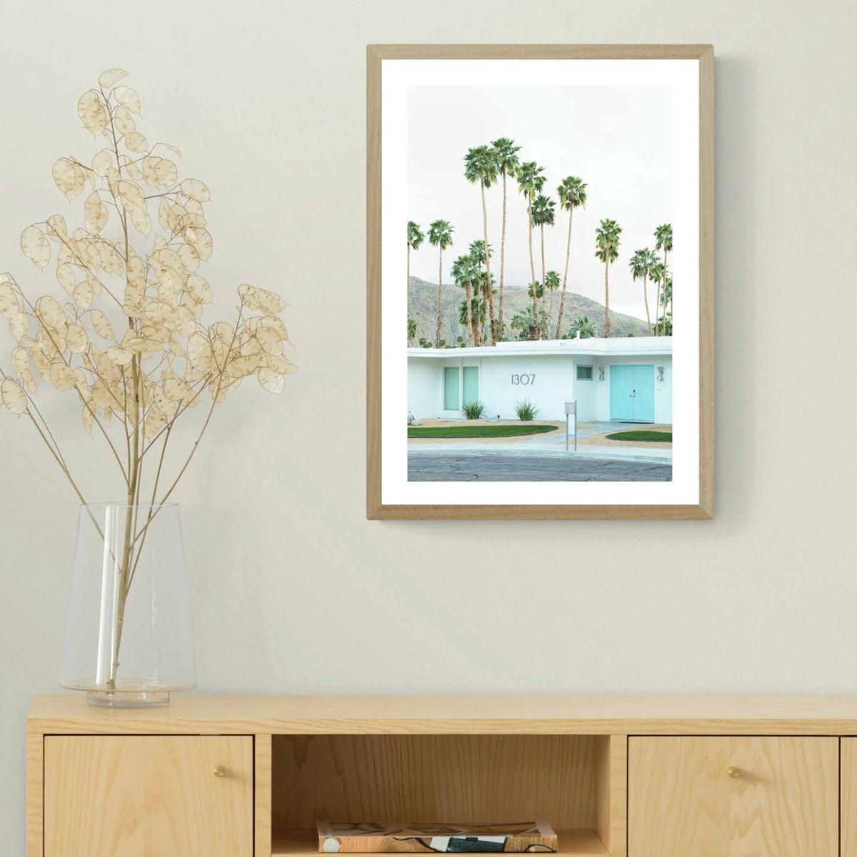 The EEP Oh Fine! Art Palm Springs print is a stylish choice for adding a pop of colour and a touch of modernity to a variety of interiors. Its clean, minimalist aesthetic makes it particularly suitable for contemporary or mid-century spaces, but it can also work well in eclectic schemes as a statement piece. I love how the soft pastel tones can be coordinated with neutral palettes, or contrasted with bolder shades for impact. Practical styling tips include pairing it with other framed prints in a gallery wall, or using it as a focal point above a sofa or sideboard. To enhance its visual appeal, consider mounting it with a slim border or pairing with complementary accessories like abstract ceramics or textured textiles.