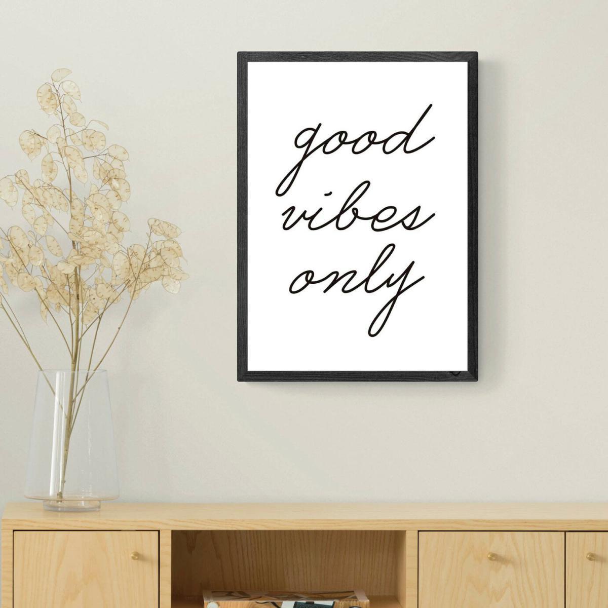 This Good Vibes print is a versatile piece that works well in both contemporary and minimalist interiors, where clean lines and simple colour palettes are key. I love its optimistic message, making it ideal for living rooms, bedrooms, or even workspace areas to instantly lift the mood. Styling tips include pairing it with neutral coloured furnishings or placing it above a sofa or console table for maximum impact. To keep the look cohesive, consider framing it in a matte black or white frame to enhance its modern aesthetic, and don’t be afraid to cluster it with other similar-sized prints for a gallery wall that boosts positive energy.