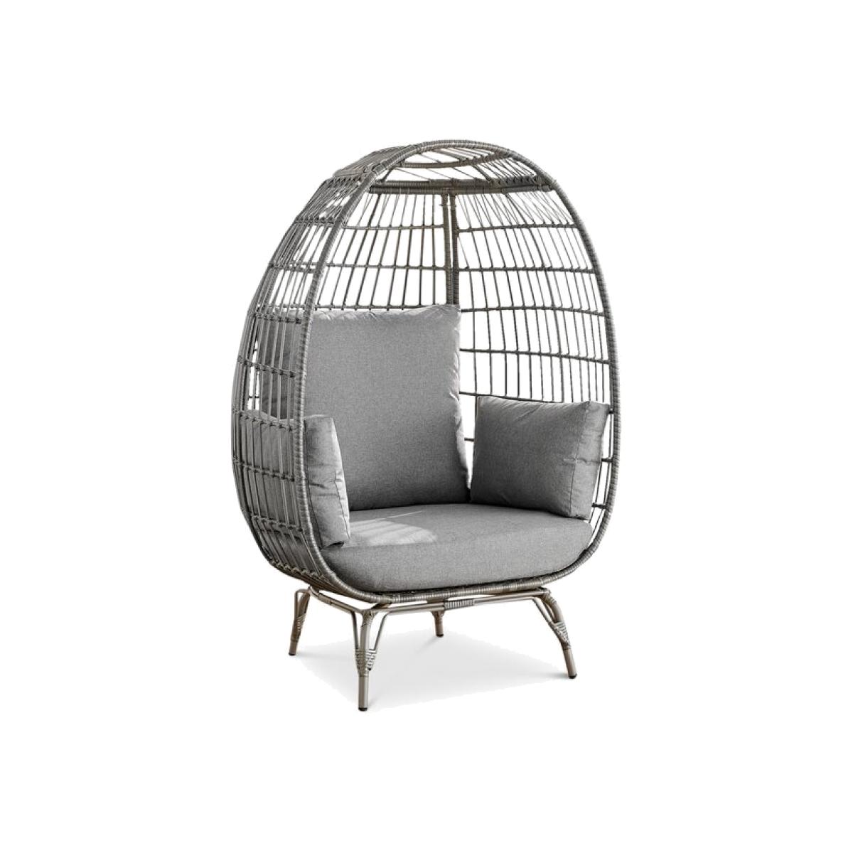 The rattan Egg chair is the perfect cosy spot for you to grab a book and a cocktail and soak up some sun in the garden. The egg-shaped framed is woven with a textured rattan weave for a natural look which is complimented by the cushions which will hug you from all sides. The Egg chair measures 84cm deep and 107cm wide, so there's plenty of room to get comfortable. The PE resin textured rattan is UV resistant and weather resistant so it can be left outdoors all year round. It's low maintenance, needing only a wipe down with a damp, soft brush or cloth every now and then to keep it looking brand new. The rattan has been hand woven over a light metal frame making it lightweight and easy to move around. The metal feet are strong, durable and made for leaving outdoors all year round. The complimentary cushions are 15cm thick which provides comfortable all round support as you sit back and relax. The cushions are UV resistant so the colour won't fade. They are splash proof so if any spills occur, pick up the cushion and give it a firm pat on the underside to encourage the droplets to roll off. However, the cushions should not be left outside or in damp conditions. Store them somewhere warm and dry. If they do get wet then allow them to fully dry in the sun or somewhere warm before you store them. DIMENSIONS - Depth 84cm, Height 149cm, Width 107cm, Seat Depth 53cm