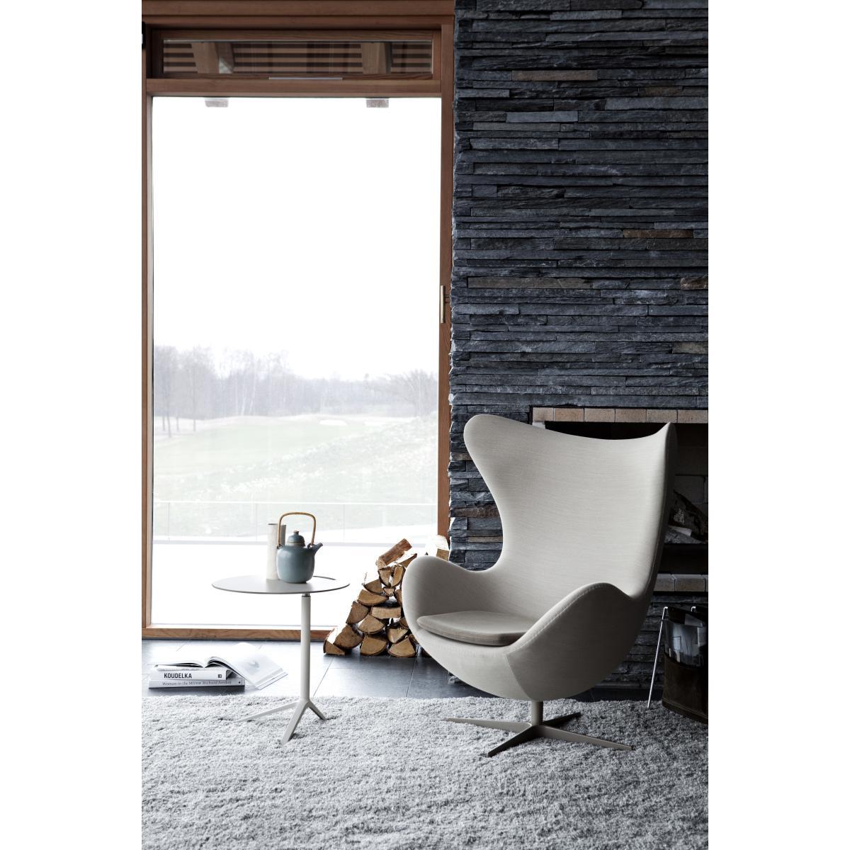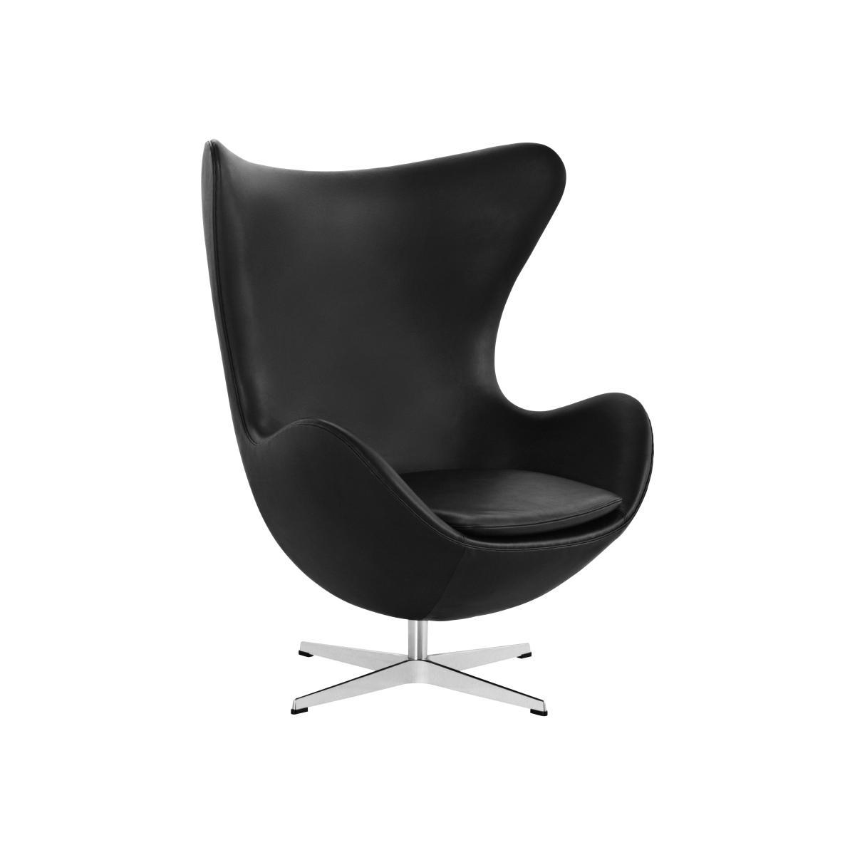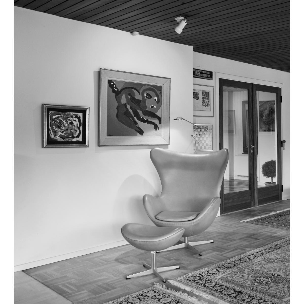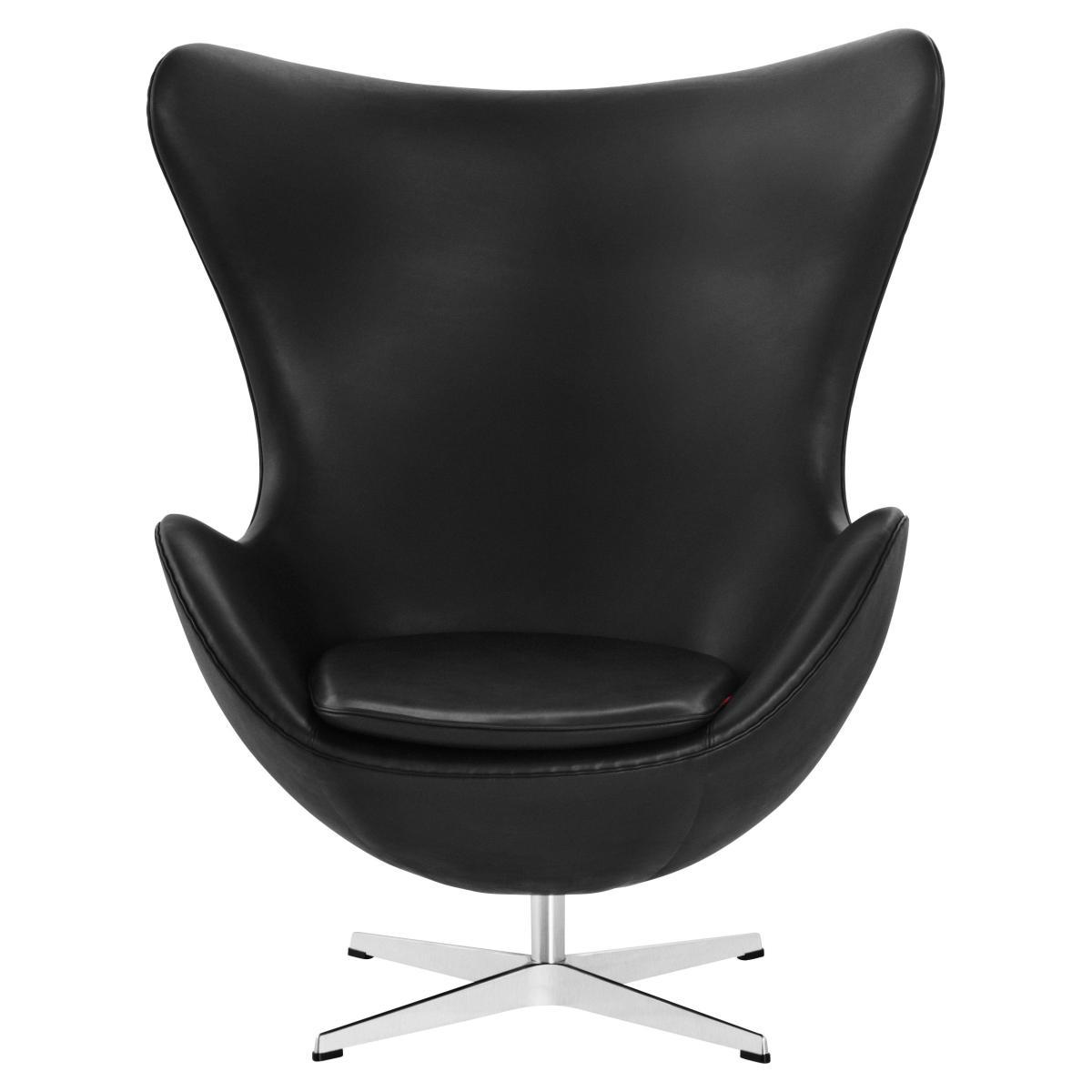 Arne Jacobsen designed the Egg™ for the lobby and reception areas in the Royal Hotel, in Copenhagen. The commission to design every element of the hotel building as well as the furniture was Jacobsen's grand opportunity to put his theories of integrated design and architecture into practice. The Egg is one of the triumphs of Jacobsen's total design - a sculptural contrast to the building's almost exclusively vertical and horizontal surfaces. The Egg sprang from a new technique, which Jacobsen was the first to use: a strong foam inner shell underneath the upholstery. Like a sculptor, Jacobsen strove to find the shell's perfect shape in clay at home in his own garage. Because of the unique shape, the Egg guarantees a bit of privacy in otherwise public spaces and the Egg - with or without footstool - is ideal for lounge and waiting areas as well as the home. The Egg is available in a wide variety of fabric upholstery as well as leather, always combined with a star shaped base in satin polished aluminium.
