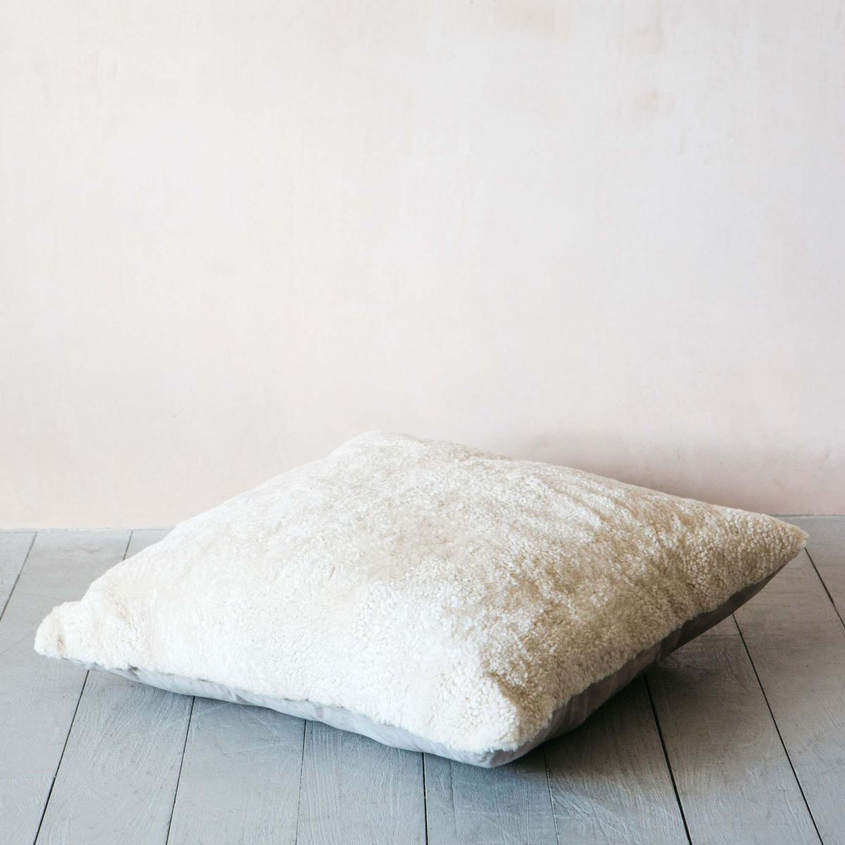 A luxuriously soft, short-haired New Zealand sheepskin floor cushion. Sumptuously filled and finished with a tonal coloured reverse.