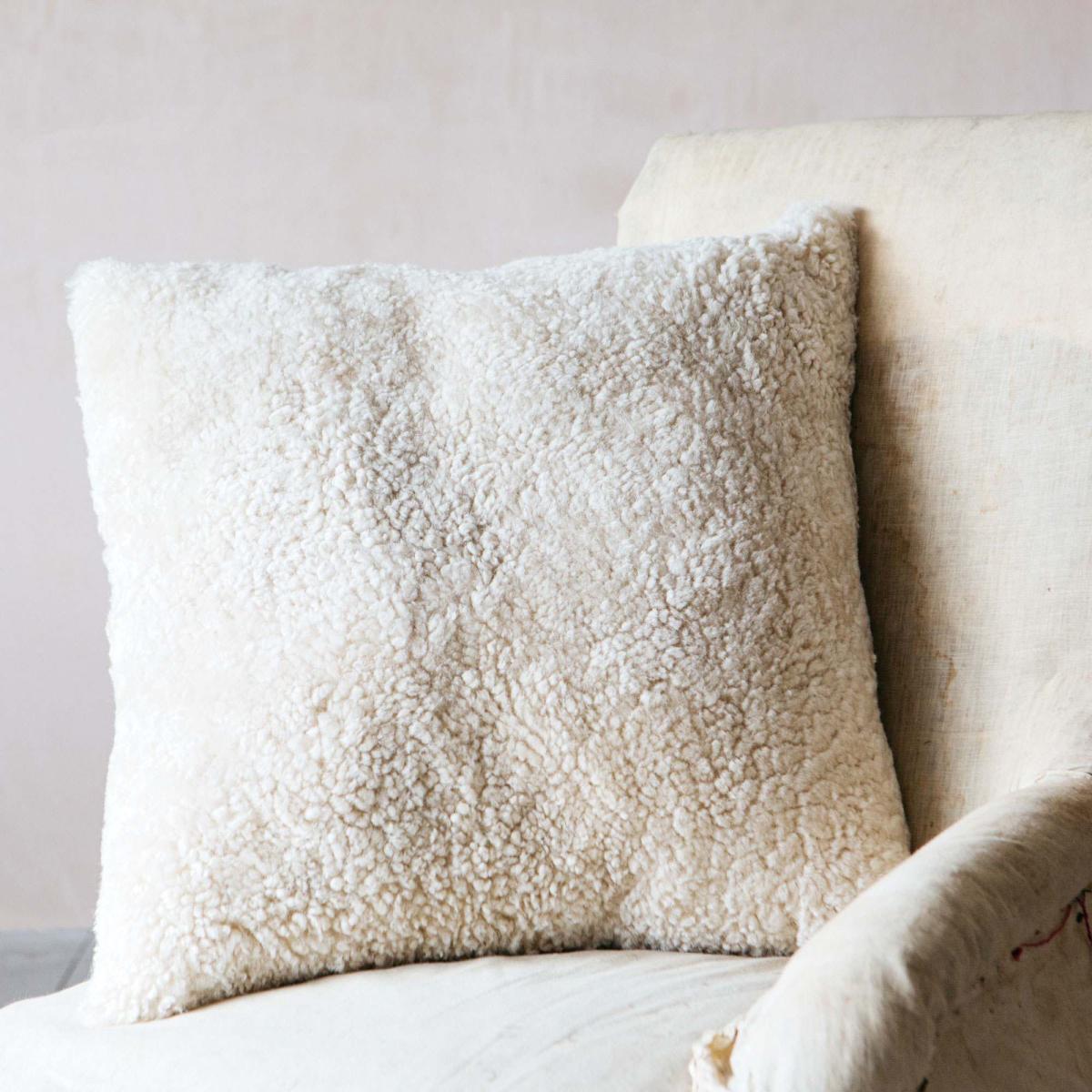 Eggshell Curly Sheepskin Square Cushion
