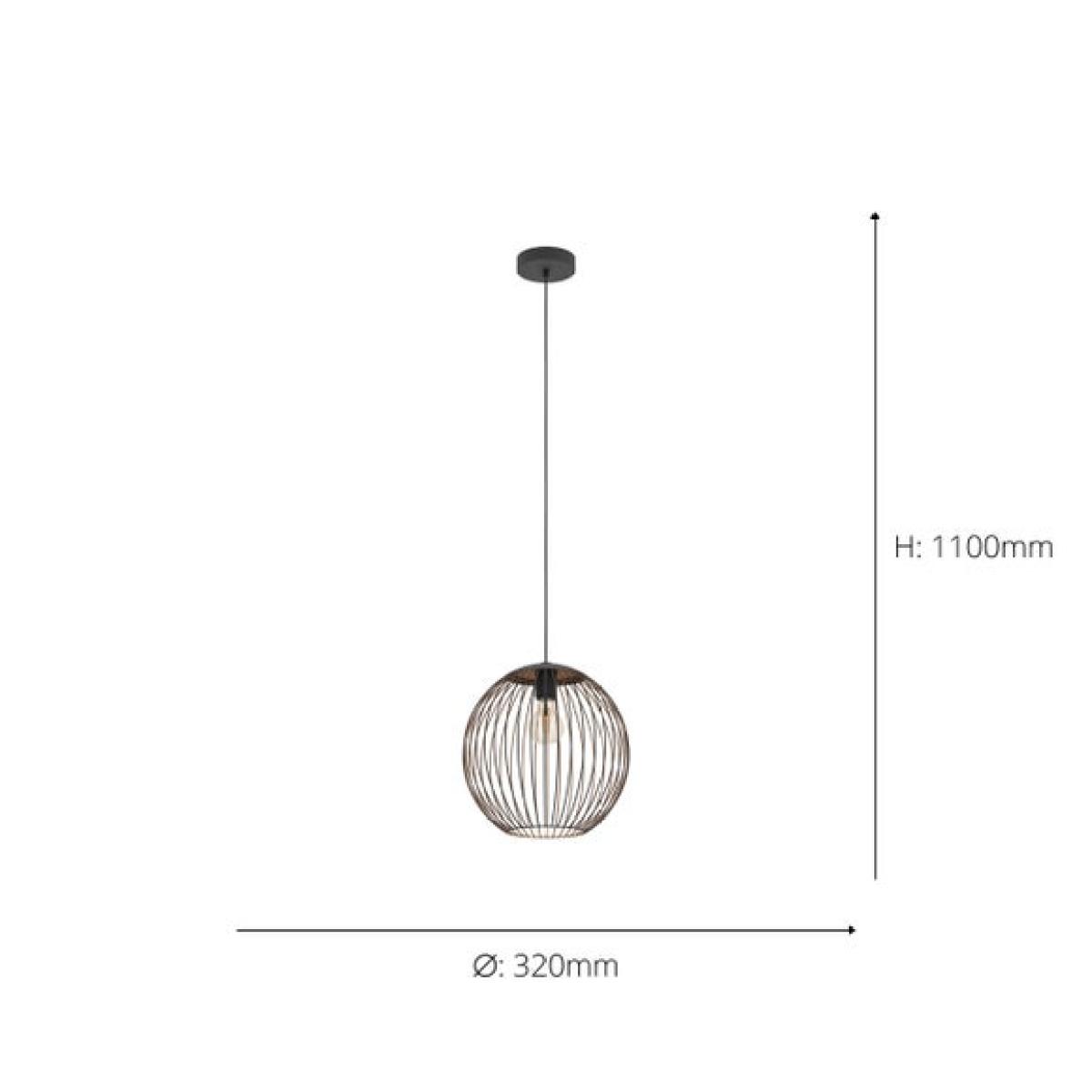 * Striking wire design with a linear lampshade * Requires 1 x E27 Bulb (not included) Add a touch of contemporary flair to your living space with this striking wire pendant light. The black and copper finish gives it a sleek, modern look, while the open-style shade allows the bulb to be seen, giving off a beautiful, ambient glow.