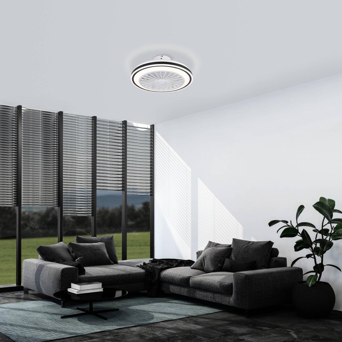 The ALMERIA ceiling fan features a compact body made from ABS plastic in a white finish with black accents. Due to the compact design, the ceiling fan is ideal for homes with low ceilings and will complement various interior styles. The integrated LED components produce a tuneable white light through the milky white diffuser. With a versatile design, this multifunctional ceiling fan offers a range of benefits and is the ideal fitting for any room.