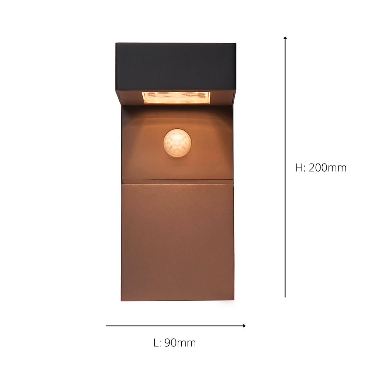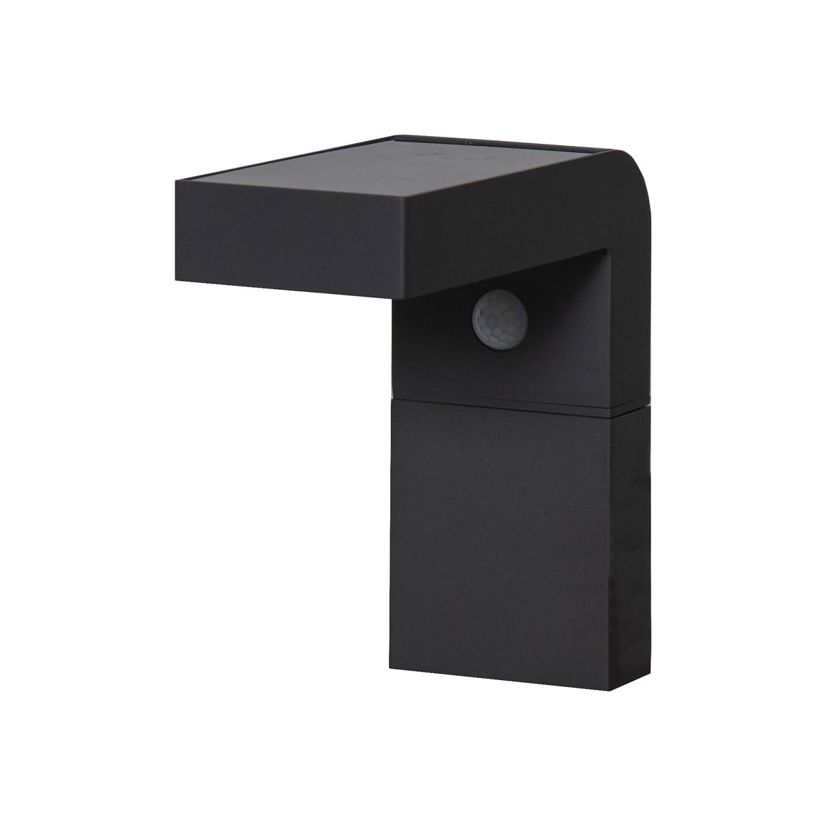 The Baracconi is a contemporary outdoor wall light featuring a rectangular design and integrated solar panels to promote energy-efficient exterior lighting. The product has a black aluminium and plastic finish with a satin plastic diffuser, producing a warm white light from the included LEDs once illuminated. Due to the solar panels, the product batteries are rechargeable and offer between 8-12 hours of illumination once fully charged. The design features an integrated sensor to detect motion up to 90 degrees and up to 6 metres. The modern style complements any garden or home exterior.