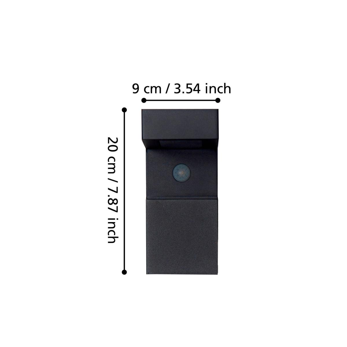 * Modern & Stylish Design* Made from Durable Aluminium* Integrated Solar Panel & Li-Ion Battery* Ensures 8 - 12 Hours of Illumination* Energy-Efficient LE Ds* Integrated & Included Twilight Sensor Brighten up your outdoor space with the EGLO Baracconi PIR Solar Wall Light – a sleek and practical addition to your home exterior. Crafted with a black aluminum housing featuring a unique rectangular angle, this wall light is equipped with an integrated solar panel and a Li-ion battery for energy efficiency. Harnessing the power of the sun, the solar panels ensure between 8-12 hours of illumination once fully charged, providing a cost-effective lighting solution. Behind the transparent plastic light surface, energy-efficient LE Ds emit a pleasant warm white light. The added motion sensor enhances security by automatically switching on the light when motion is detected within a range of 90 degrees and up to 6 meters away. Upon activation, the outdoor light illuminates with a bright 300 lumens for 25 seconds before reducing to a subtle 30 lumens. Designed with a modern down light, the EGLO Baracconi PIR Solar Wall Light integrates into various outdoor settings, providing both stylish and indirect lighting on your house wall. With an integrated twilight sensor, this wall light operates only when necessary, ensuring optimal energy usage.