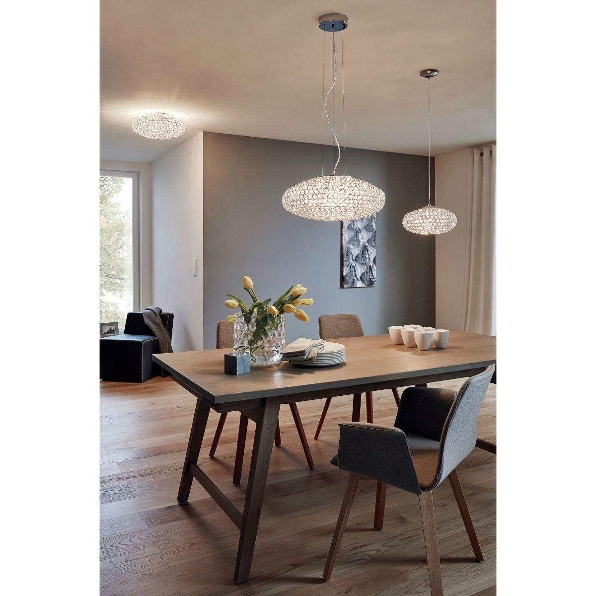 I love this pendant because it offers a sophisticated touch with its crystal accents and sleek chrome finish, making it a versatile choice for various interior styles. It works particularly well in contemporary or modern schemes, especially over dining tables or kitchen islands, where you want to create a centrepiece that catches the light and adds a bit of glamour. For styling, consider pairing it with minimalist furniture to let the chandelier shine, or contrast it with plush textiles and neutral tones for a more luxe look. When installing, ensure the height allows it to hang proportionally within the space-too low in a low-ceiling room can feel overwhelming, but it’s perfect for adding impact in higher ceilings. Overall, it’s a stylish statement piece that combines practicality with elegance.