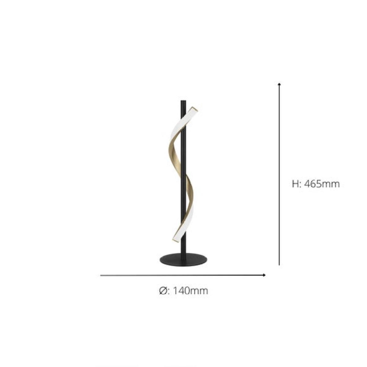 * Organically dynamic design with a sophisticated mix of materials * Integrated LED * Features Tri-Colour CCT and 3-step dimming via an in-line switch This beautiful table lamp is the perfect way to add a touch of contemporary flair to your living room or bedroom. The striking spiral design in black and brushed brass creates a unique silhouette that will stand out on any surface. Its built-in LED can be adjusted to a range of colour temperatures, from a warm, cosy white to a bright, cool white, so you can always set the perfect mood.