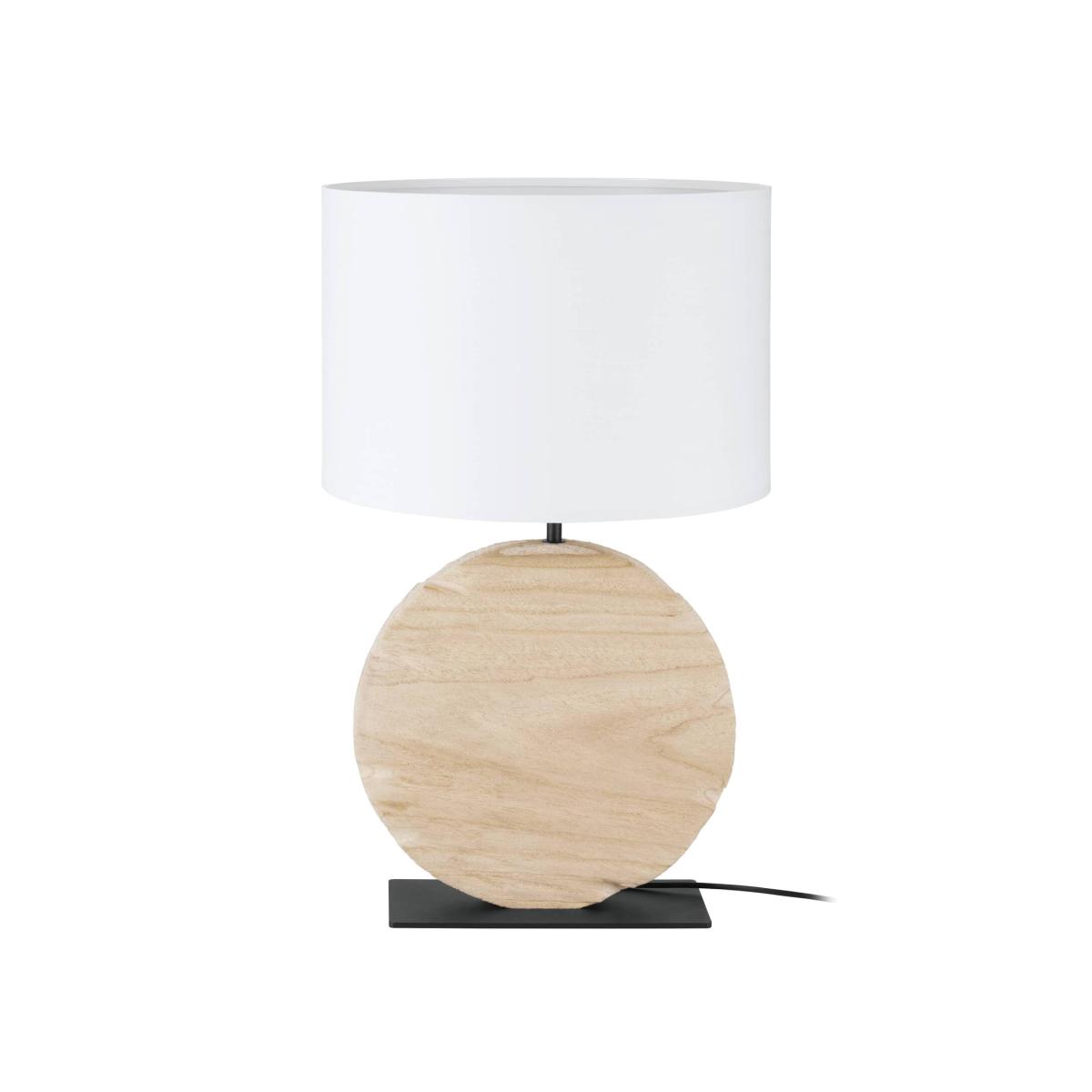 The Contessore table lamp, with its round base of pale hardwood and a round white fabric shade, is designed for your comfort and ease of use. The large table lamp can be switched on and off easily with the in-line switch and blends superbly with modern and natural interiors such as boho-style homes. It provides cosy lighting for any space and would work well on a bedside table, a sideboard in the hallway, or the living room or dining room. The product has an E27 lamp holder and requires 1 x E27 lightbulb, which is not included.