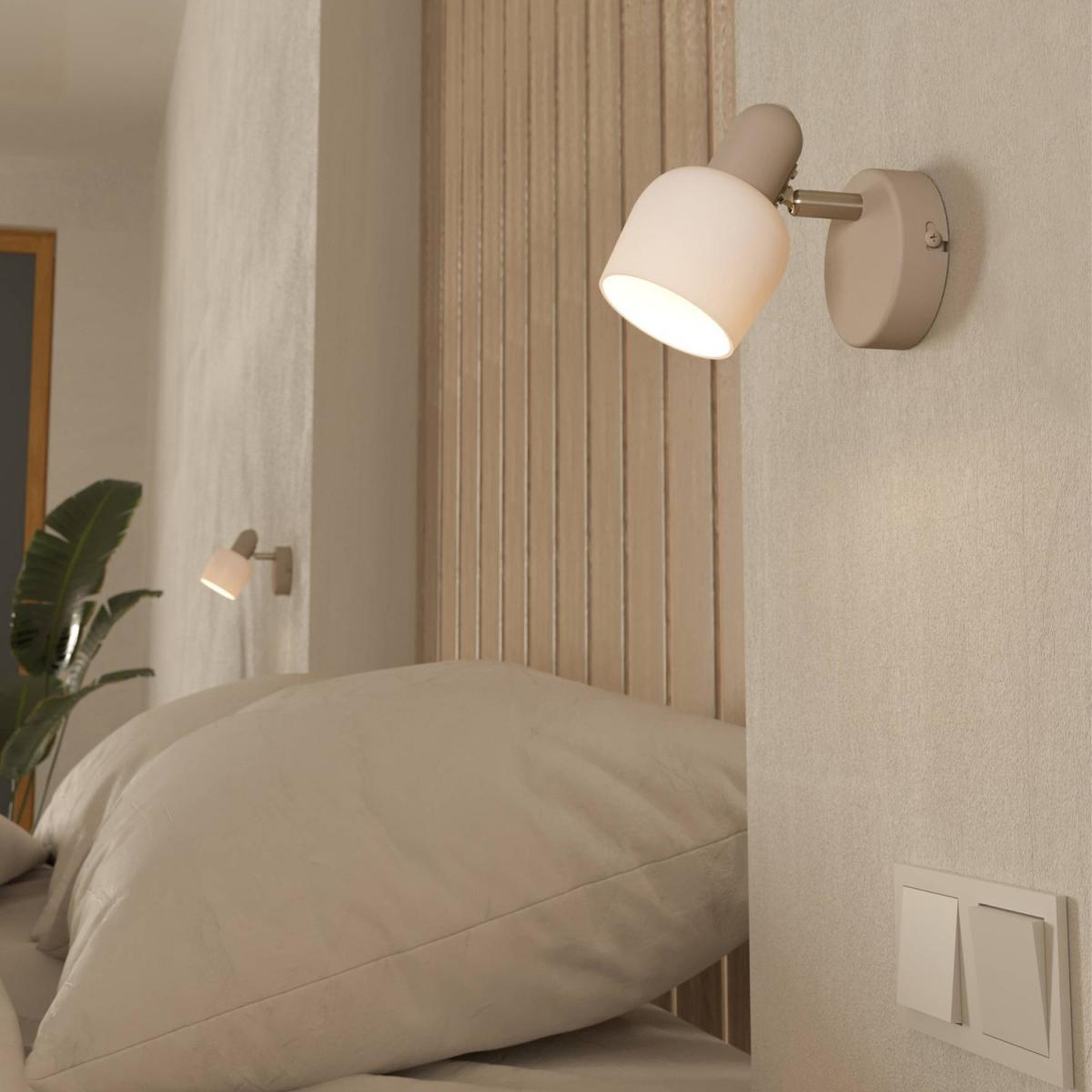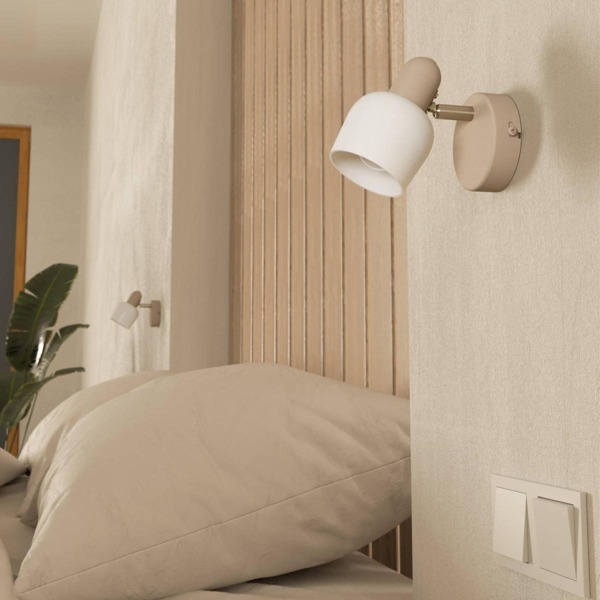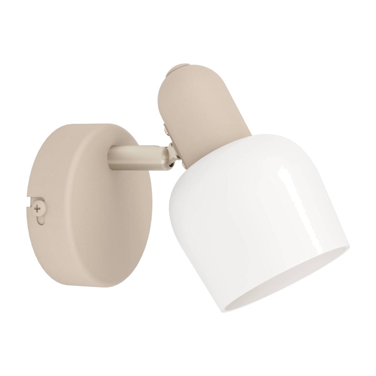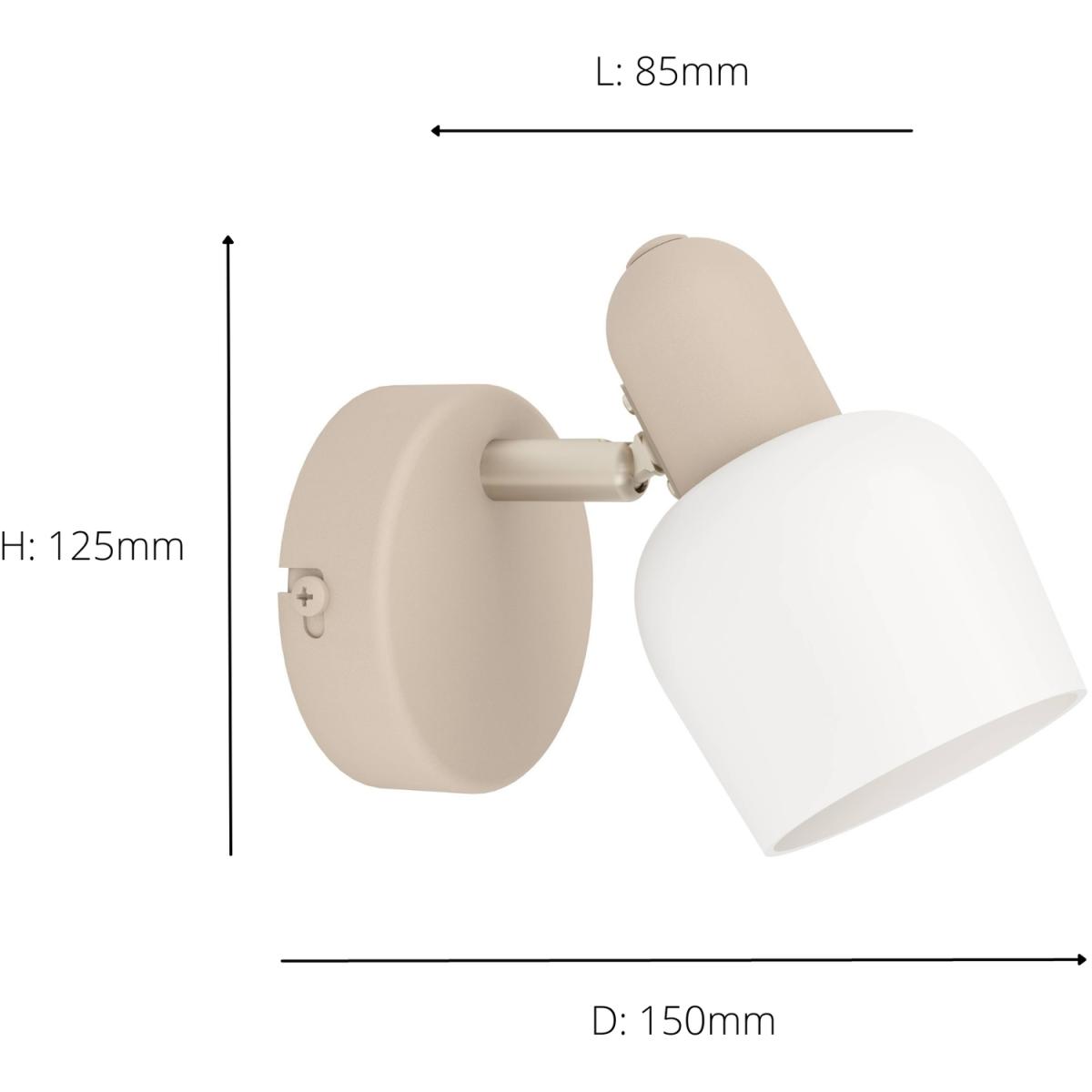 The CORATO spotlight features a steel wall mount in a sandy-coloured finish and an adjustable spotlight with a white glass lampshade. The pivoting spotlight head offers the flexibility to accentuate and highlight specific areas or pieces of furniture within the room, allowing you to create your desired atmosphere. The spotlight blends seamlessly with modern and minimalist interiors, providing focused lighting in the living room, bedroom, hallway and dining room. The product has an E14 lamp holder and requires an E14 lightbulb, which is not included.