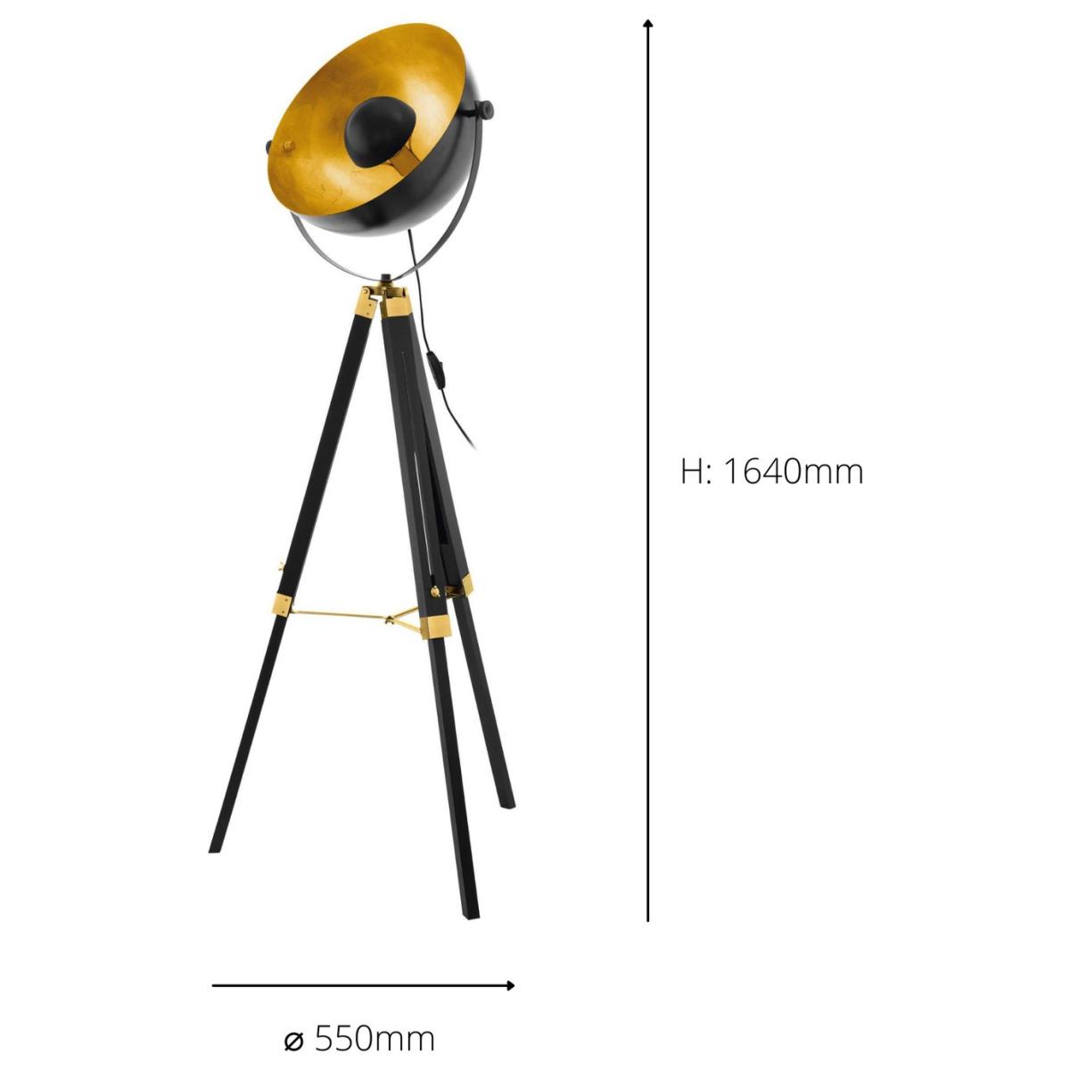 The Covaleda Floor Lamp: chic black wood tripod base, pivoting lampshade with black steel finish and inner gold lining. Creates cosy indirect lighting. Easy on/off with in-line switch. Perfect for any room! Perfect for the bedroom, living room or dining room. In-line floor switch. Dimensions: Size H164, Diameter 55cm. Diameter of base 55cm. Shade size H19, D 10cm. Cord length 1m. Bulb Information: Bulb required 1 x classicE2. 7 edison screw (not included). 60 watts. Adjustable head. General Information: Shade material: steel. Base material: steel. In-line switch. IP 20not suitable for bathroom use. Self-assembly. Product is easy fit shade. This lighting product is a class 2 fitting. Weight 3.56kg. Part of the EGLO Covaleda collection. Manufacturer's 2 year guarantee.