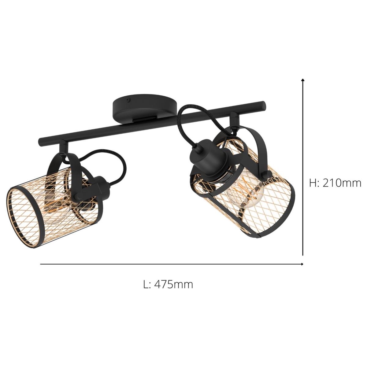 The Dellow ceiling light features two adjustable metal lampshades made from fine expanded metal mesh in brushed brass with a black metal mount. The design creates a fascinating play of light and shadows when illuminated due to the lattice style. The ceiling spotlight superbly complements modern interior styles and tastefully reflects the current trend of large, statement spotlights. Perfect in the living room, bedroom, hallway or dining room. Adjustable lamp head. Part of the EGLO Dellow collection. Dimensions: Size H21, W47.5, D18cm. Diameter 11cm. None adjustable drop. Bulb Information: Bulbs required 2 x classic E27 edison screw (not included). Recommended maximum wattage: 40 watts. General Information: Steel. IP rating 20 - not suitable for bathroom use. Weight: 1.37kg. Self-assembly. Product is hard-wired into electrics. This lighting product is a class 1 fitting. Manufacturer's 2 year guarantee.