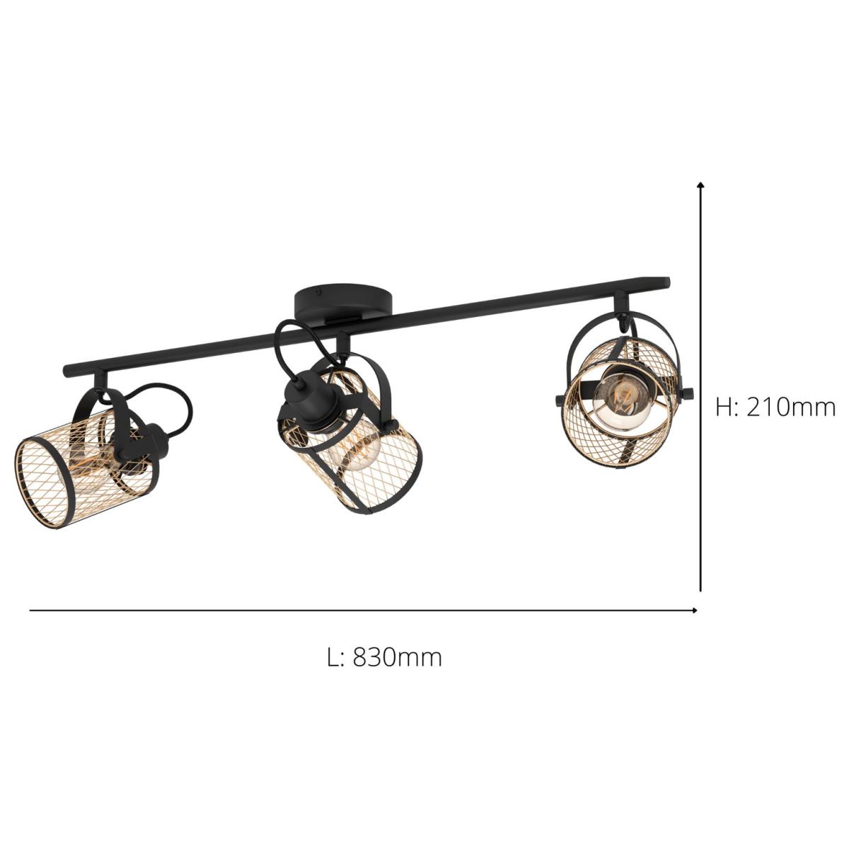 The Dellow ceiling light features three adjustable metal lampshades made from fine expanded metal mesh in brushed brass, combined with a black metal mount. The design creates a fascinating play of light and shadows when illuminated due to the lattice style. The ceiling spotlight superbly complements modern interior design styles and tastefully reflects the current trend of large, statement spotlights. Perfect in the living room, bedroom, hallway or dining room. Adjustable lamp head. Part of the EGLO Dellow collection. Dimensions: Size H21, W18, D83cm. Diameter 11cm. None adjustable drop. Bulb Information: Bulbs required 3 x classic E27 edison screw (not included). Recommended maximum wattage: 40 watts. General Information: Steel. IP rating 20 - not suitable for bathroom use. Weight: 4.25kg. Self-assembly. Product is hard-wired into electrics. This lighting product is a class 1 fitting. Manufacturer's 2 year guarantee.