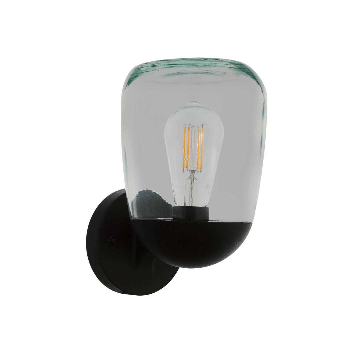 The Donatori is a contemporary exterior wall light with a circular black base and clear glass finish. The product has a rounded clear glass lampshade with a visible lightbulb design. The product requires 1 E27 lightbulb and would compliment a retro-style or a Smart lightbulb to enhance the design. The product has an IP44 rating and durable finish, perfect for outdoor use. The exterior wall light would complement a modern or minimalist home due to its sleek style.