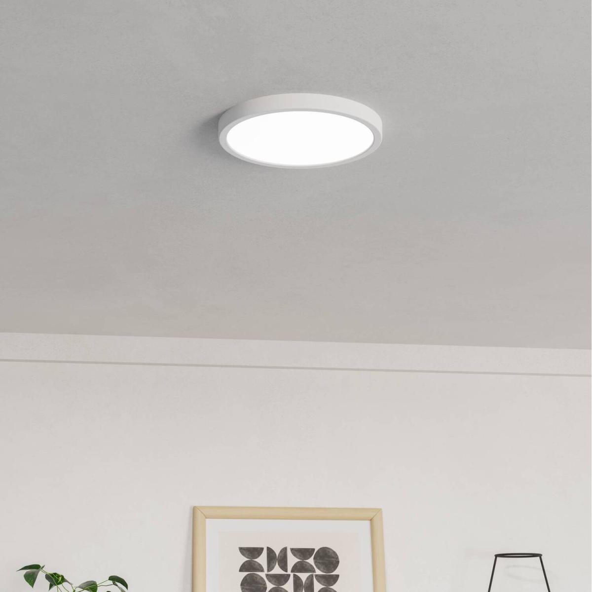 Bring sleek, modern lighting to your home with the EGLO FUEVA 6 901308 LED Surface Mounted Ceiling Light. Designed for minimalist interiors, this ultra slim fixture (just 25mm thick) delivers powerful, energy efficient illumination with a clean white finish that blends seamlessly into any room. Key Features: Tri Colour Light Output: Easily switch between warm white (2700. K), neutral white (4000. K), and daylight (6500. K) directly on the product to suit your space and mood. Bright and Efficient: Delivers 2000 lumens of light using just 14.2 W of power, with a maximum system wattage of 16 W. Ultra Slim Design:At only 25mm height, it's perfect for low ceilings and modern interiors. Clean Aesthetic:White plastic enclosure and diffuser for a seamless, contemporary look. Safe and Reliable: IP20 rated and Class II protection for indoor use. Specifications: Model: EGLO FUEVA 6 901308 IP20 Rated Dimensions: D278mm x H25mm Material: Plastic (body and diffuser) Light Output: 2000 lumens Colour Temperature: 2700. K, 4000. K, 6500. K Voltage: 220 to 240. V, 50 to 60Hz Energy Efficiency Class: E Weight: 0.67 kg Dimmable: No Switch Type: None (CCT change on product) Ideal for hallways, kitchens and utility areas, the FUEVA 6 offers a stylish and practical lighting solution for any modern home.