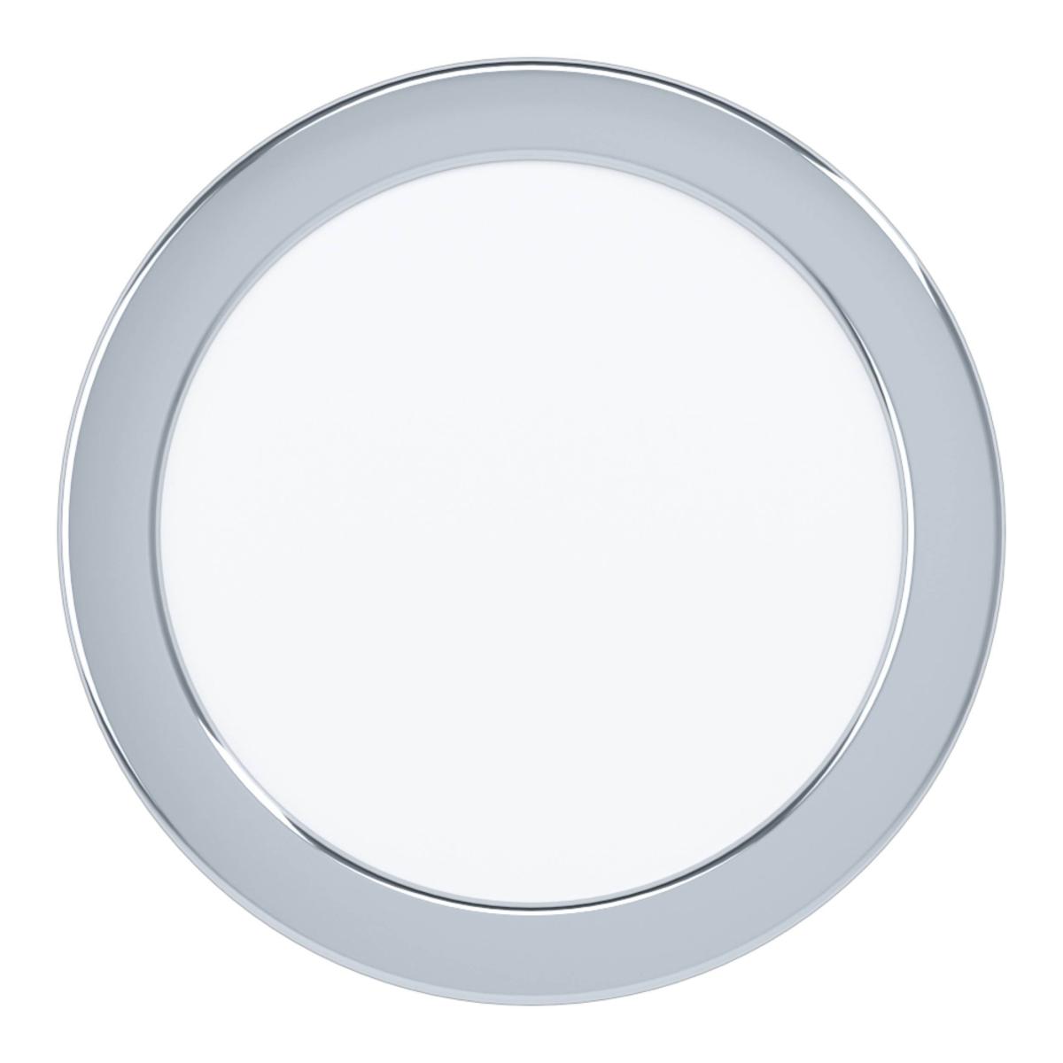 * IP44 rating* Integrated LED* Chrome Finish* 5 Year Guarantee The Fueva 5 recessed LED light is made of chrome-coloured metal and has a diameter of 166 mm. With a height of just 26 mm, it works well in almost any living space and can even be installed in insulating material. The product has IP44 protection against spray water, so it is suitable for use in the bathroom. The integrated LED components are covered by a white diffuser and produce a neutral white light. A recess of 155 mm is a requirement for installation. The recessed spotlight's classic design and neutral white light are perfect for any space where good lighting is needed, such as the bathroom, kitchen, hallway, utility room or office.