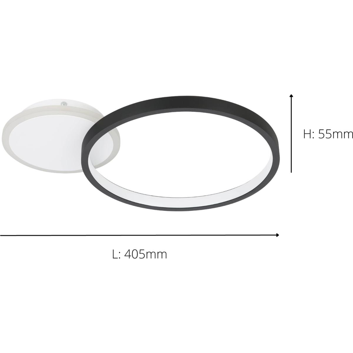 The GAFARES LED ceiling light features a white metal base, a round light panel fitted with a black ring-shaped LED profile and an inner light diffuser. The integrated LEDs under the white plastic light diffusers produce an adjustable light with a choice between warm white, neutral white and cool white light. The product includes a remote control, which offers features such as dimming, a nightlight and a timer (switch off after 30 minutes). With its minimalist design, the product provides modern lighting for any space, whether in the kitchen, living room, bedroom, hallway or dining room.