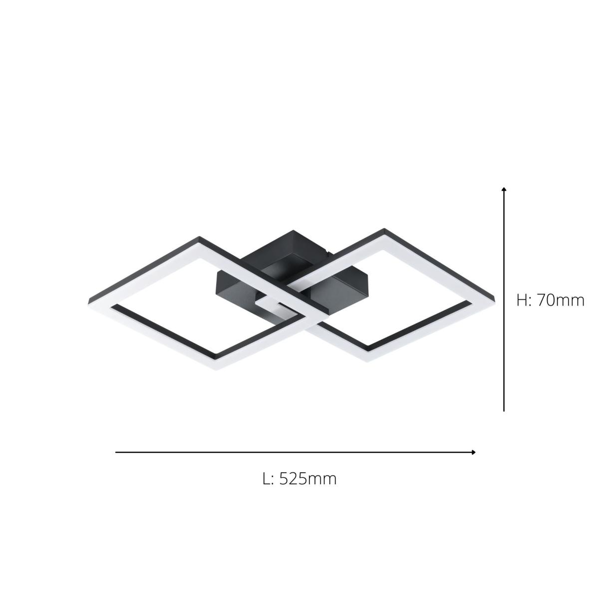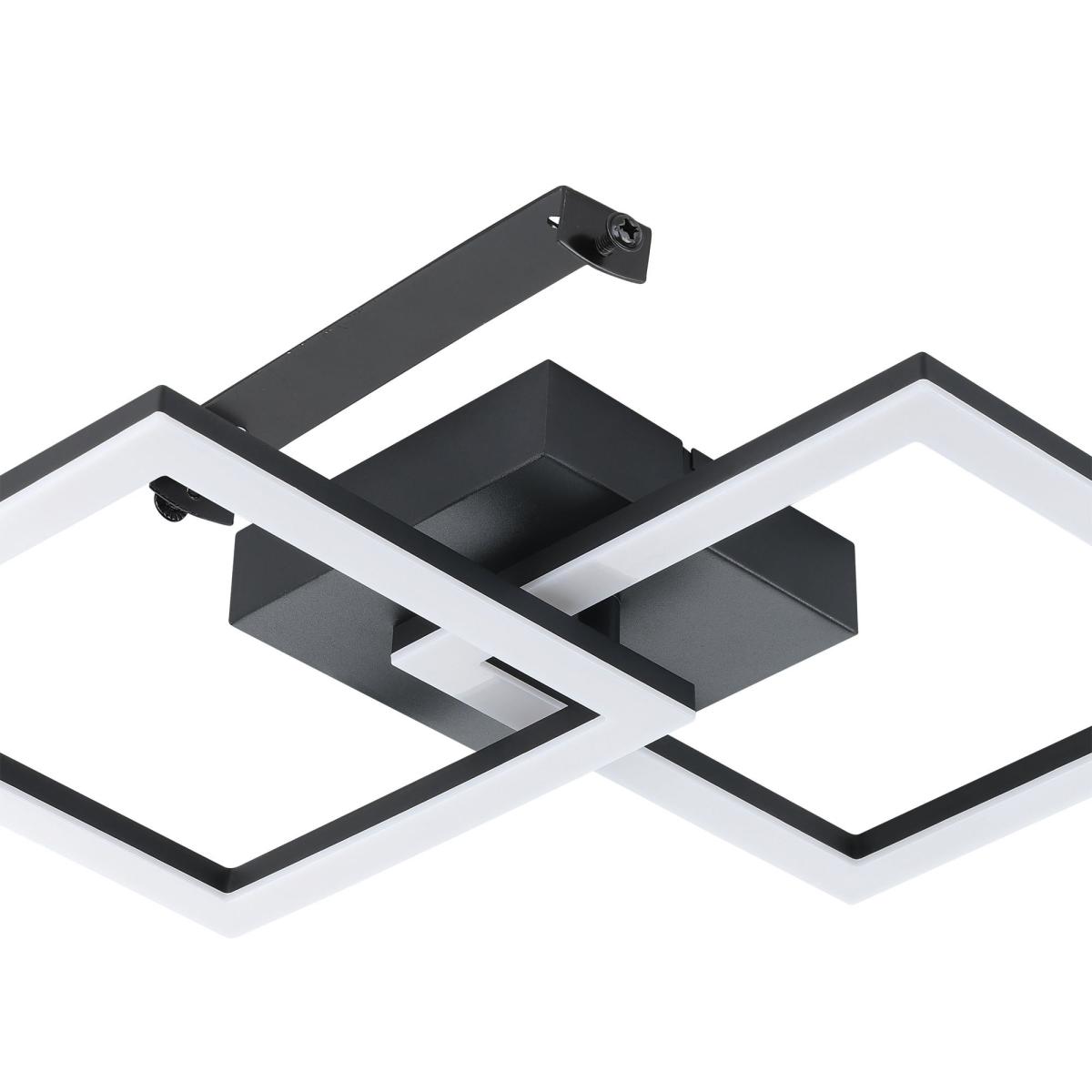 The EGLO Huerta-E is a sleek, modern ceiling light that brings a contemporary edge to a variety of interiors. I love its geometric design and black finish, which make it versatile - perfect for minimalist, industrial, or even modern eclectic spaces. It works well above dining areas, living rooms, or bedrooms where you want a statement piece that also provides ample light. Practical styling tips would be to pair it with matte black or rough-metal accents and keep surrounding decor simple to allow the fixture to stand out. For a softer look, consider pairing it with warm-toned bulbs to balance the sharp angles of the design.