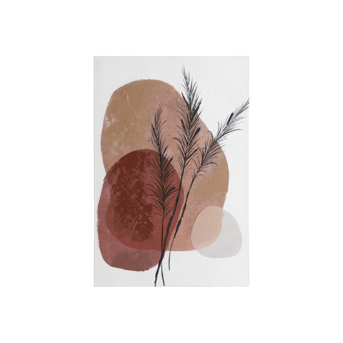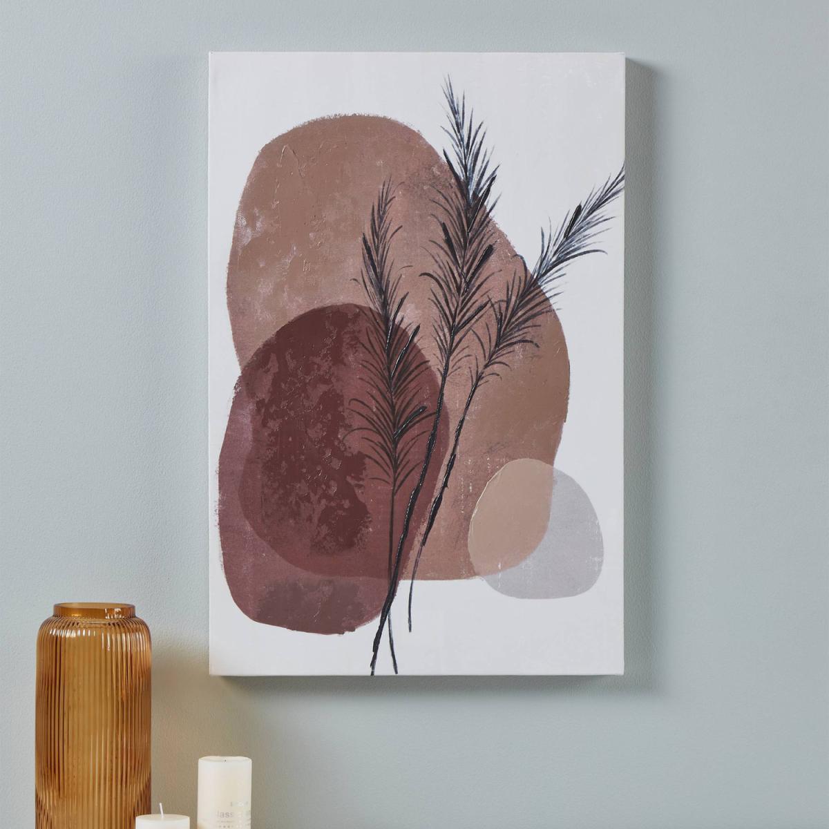 The JERANTUT is a printed canvas stretched on a wooden frame with a juxtapositioned design featuring modern and vintage themes. Timeless and simple, the wall art has a sculptural design, made up of multiple colour blocks with neutral tones adorned with simple foliage, ideal for complementing homes with soft furnishings and minimalistic style. Measuring 60x40 cm, the design is an eye-catching feature piece perfect for an empty wall. Wall fittings are not included.