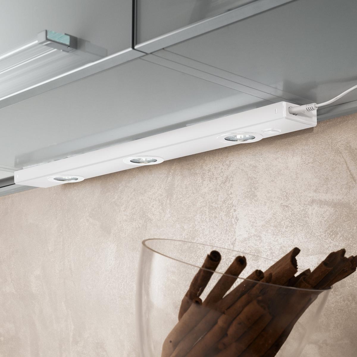 * Chic, Sleek Metal Fixture* Easy-to-Use Rocker Switch* Provides Optimal Light for Kitchen Tasks Brighten up your kitchen with the stylish EGLO KOB LED Under Cabinet Light, a sleek fixture with a chic metal finish. Emitting a pleasant warm white light, the integrated LE Ds enhance visibility on your kitchen worktops. The easy-to-use rocker switch on the housing ensures convenient control, making it a breeze to adjust the lighting to suit your needs. With a minimalist and modern aesthetic, this light complements various home living styles whilst delivering optimal lighting for your kitchen tasks