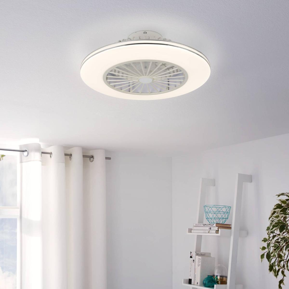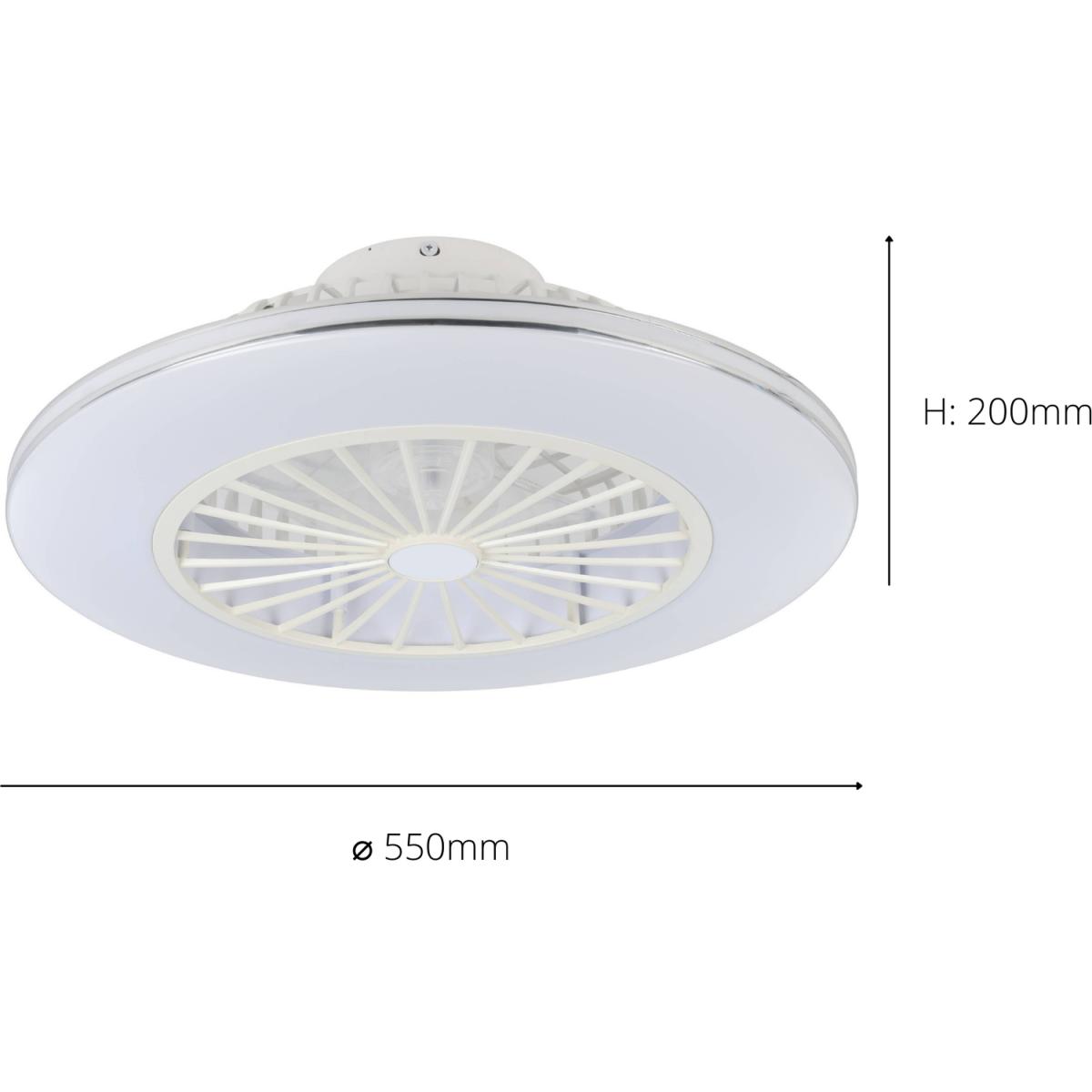 The LOVISCA ceiling fan features a compact body made from ABS plastic in a white finish and metallic silver accents. Due to the compact design, the ceiling fan is ideal for homes with low ceilings and will complement various interior styles. The fan is adjustable, with three different speed settings, while the integrated LED components produce a tuneable white light through the milky white diffuser. This modern ceiling fan has a built-in AC motor and an airflow-power ratio of 1960 mmin. With a versatile design, this multifunctional ceiling fan offers a range of benefits and is the ideal fitting for any room.
