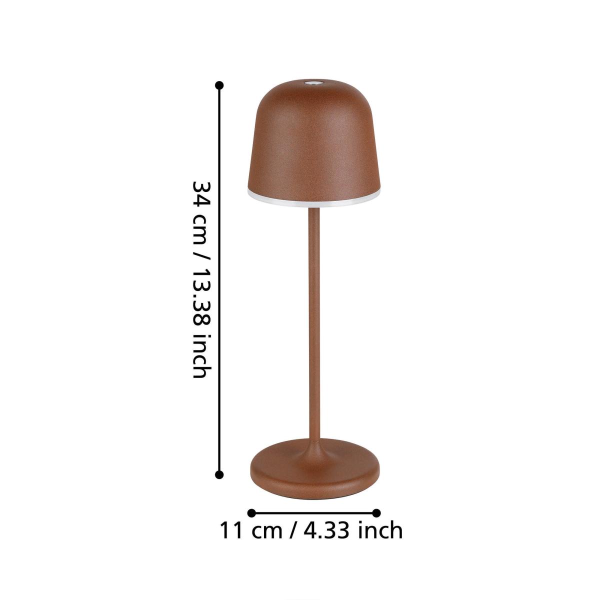 * Stylish, Modern Design* Available in Multiple Colourways* Integrated LE Ds* 'Touch Me' On/Off/Dim Button* Built In, Rechargeable Battery* IP54 Protection Rating Meet the EGLO Mannera Touch Dimmable Table Lamp - your stylish companion for both indoor and outdoor lighting adventures! Crafted with a sleek aluminum and steel body, this cordless lamp features a plastic light diffuser for that perfect touch of sophistication. The integrated LED components emit a beautiful warm white light, transforming any outdoor space into a welcoming haven. Taking control of the mood is a breeze with the 'Touch Me' feature on the lamp shade – effortlessly switch it on or off and even dim the light with a simple touch. Thanks to its built-in battery, the Mannera is highly portable, allowing you to illuminate any corner with ease. When it needs a power boost, simply plug in the rechargeable battery using a USB-C cable (not included). With an IP54 protection rating, this outdoor table lamp is dust and splash-proof, ready to shine in any weather condition. Its stylish and functional design effortlessly blends into any modern setting, making it the perfect lighting solution for your space.