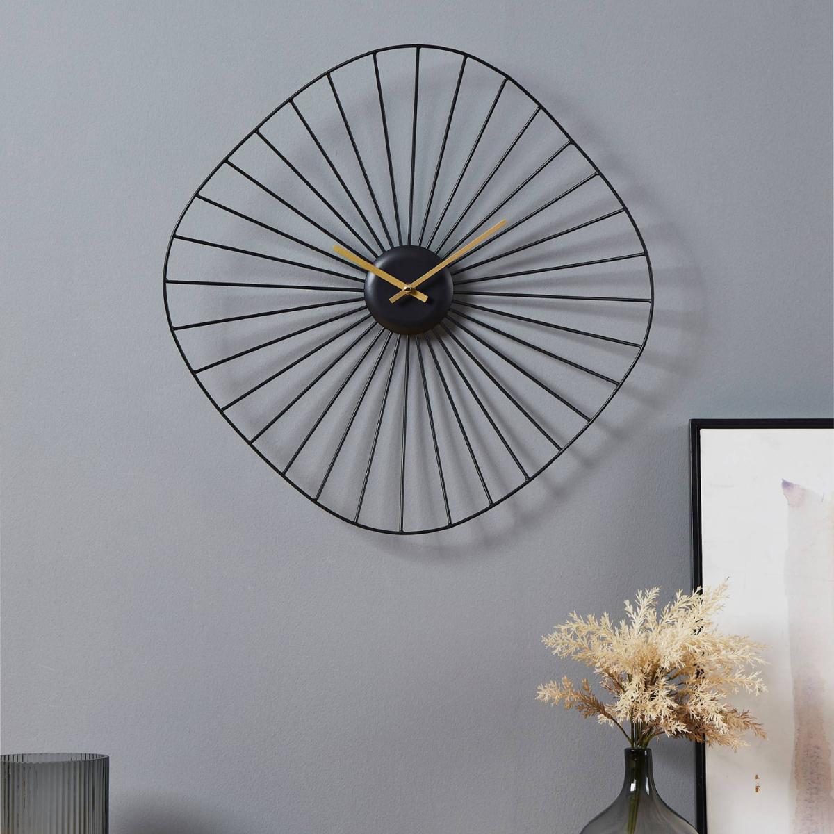 EGLO Matsumoto Organic-Shaped Black Steel Skeleton Wall Clock - black, brass