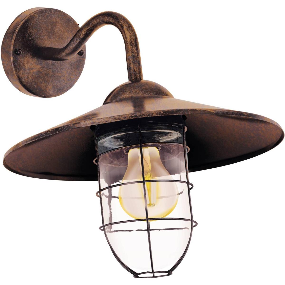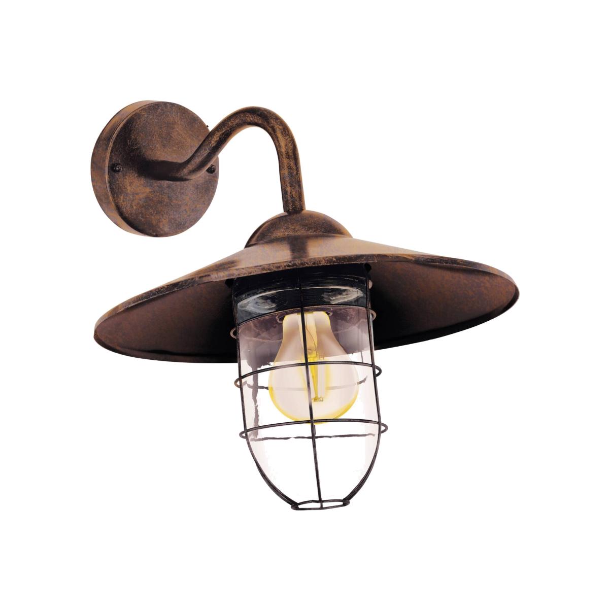 The Melgoa draws from traditional designs to create a beautiful choice for exterior lighting. The product has a circular base with a curved arm and a flat bistro-style shade. The product has an antique-style copper-coloured finish in zinc-plated steel and has a cylindrical clear glass shade that has copper caged detailing around it. The product can be corner mounted and has an IP44 rating. The Melgoa requires 1 x E27 illuminant and would compliment a retro-style lightbulb to enhance this antique style.