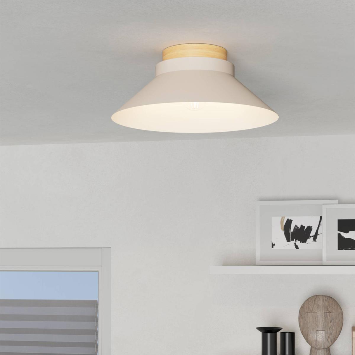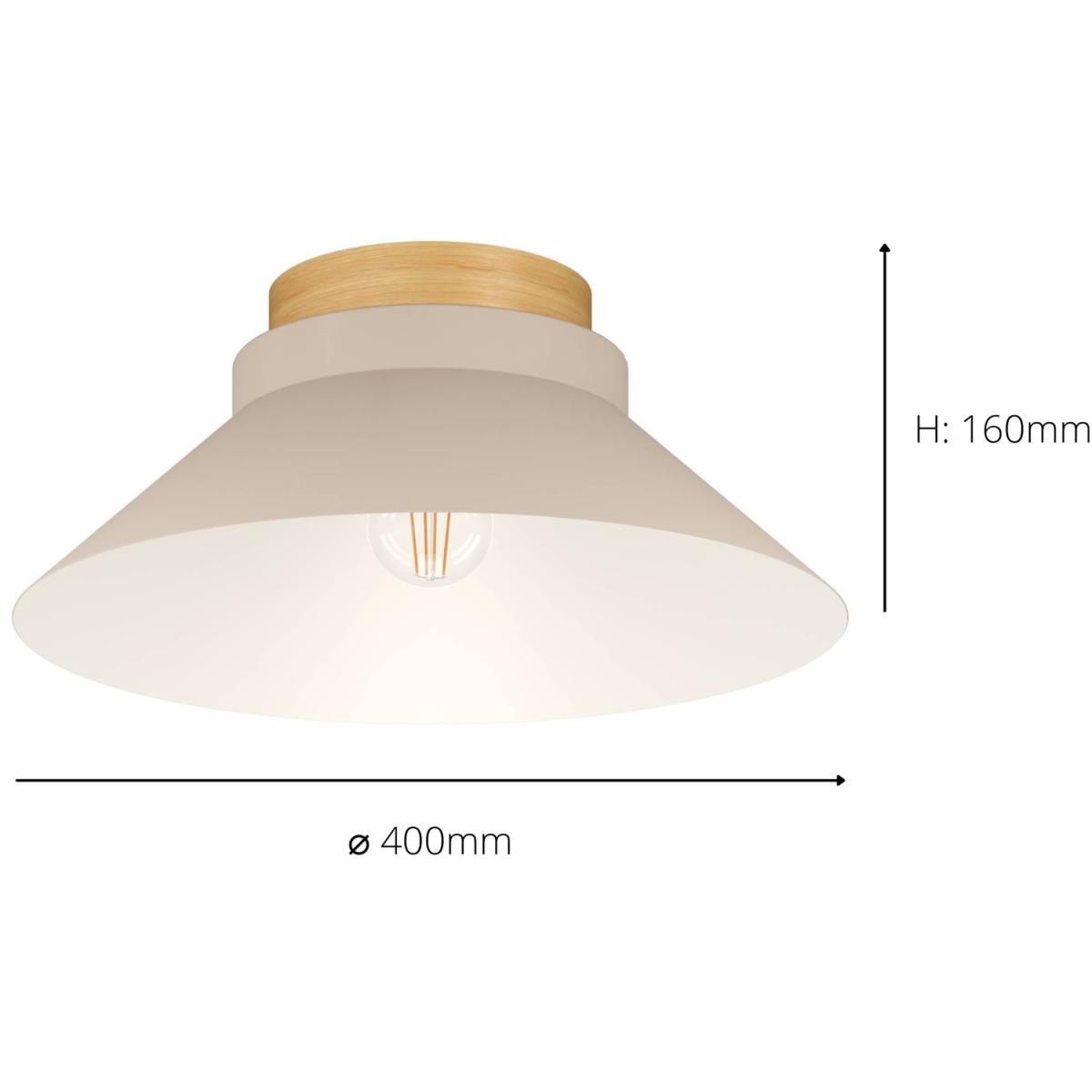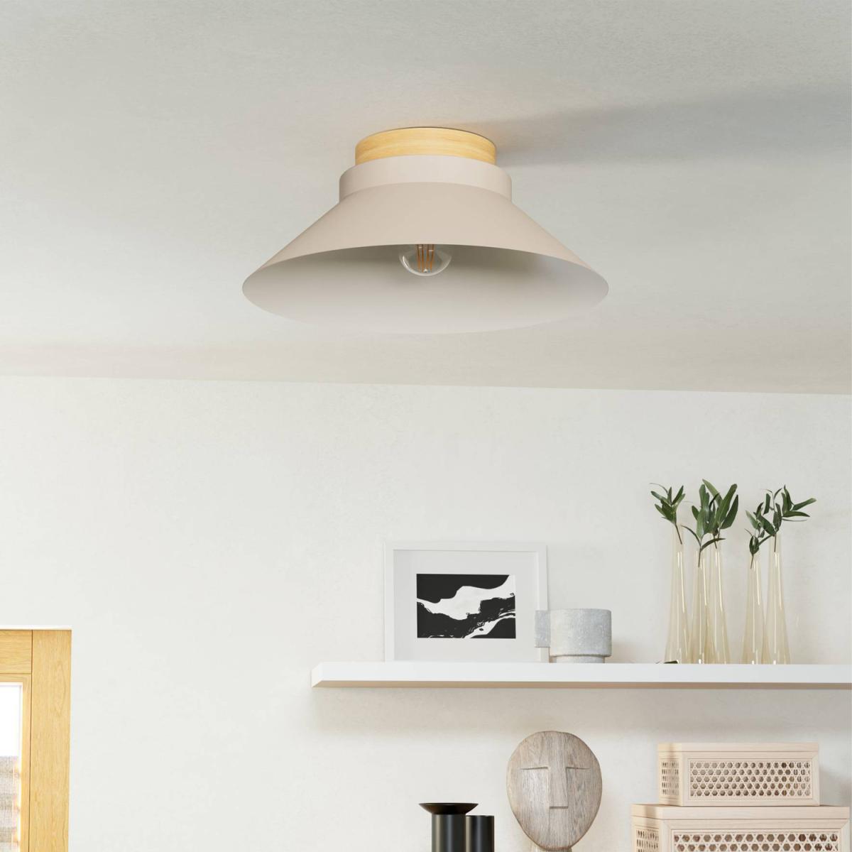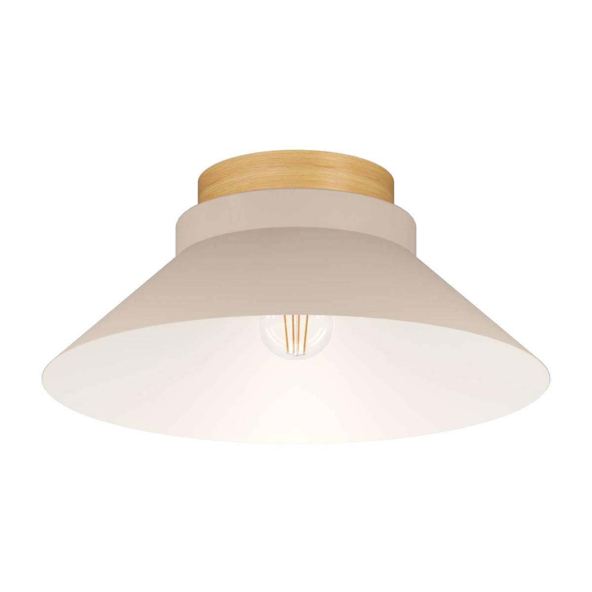 The MOHARRAS ceiling light features a funnel-shaped lampshade made of sand-coloured metal attached to a rounded FSC wooden canopy. Drawing from natural inspirations, the ceiling light blends seamlessly into Scandi Boho-style interiors, exuding a natural and inviting atmosphere. The MOHARRAS offers cosy lighting for every room, whether in the kitchen, living room, bedroom or hallway. The product has an E27 lamp holder and requires an E27 lightbulb, which is not included.