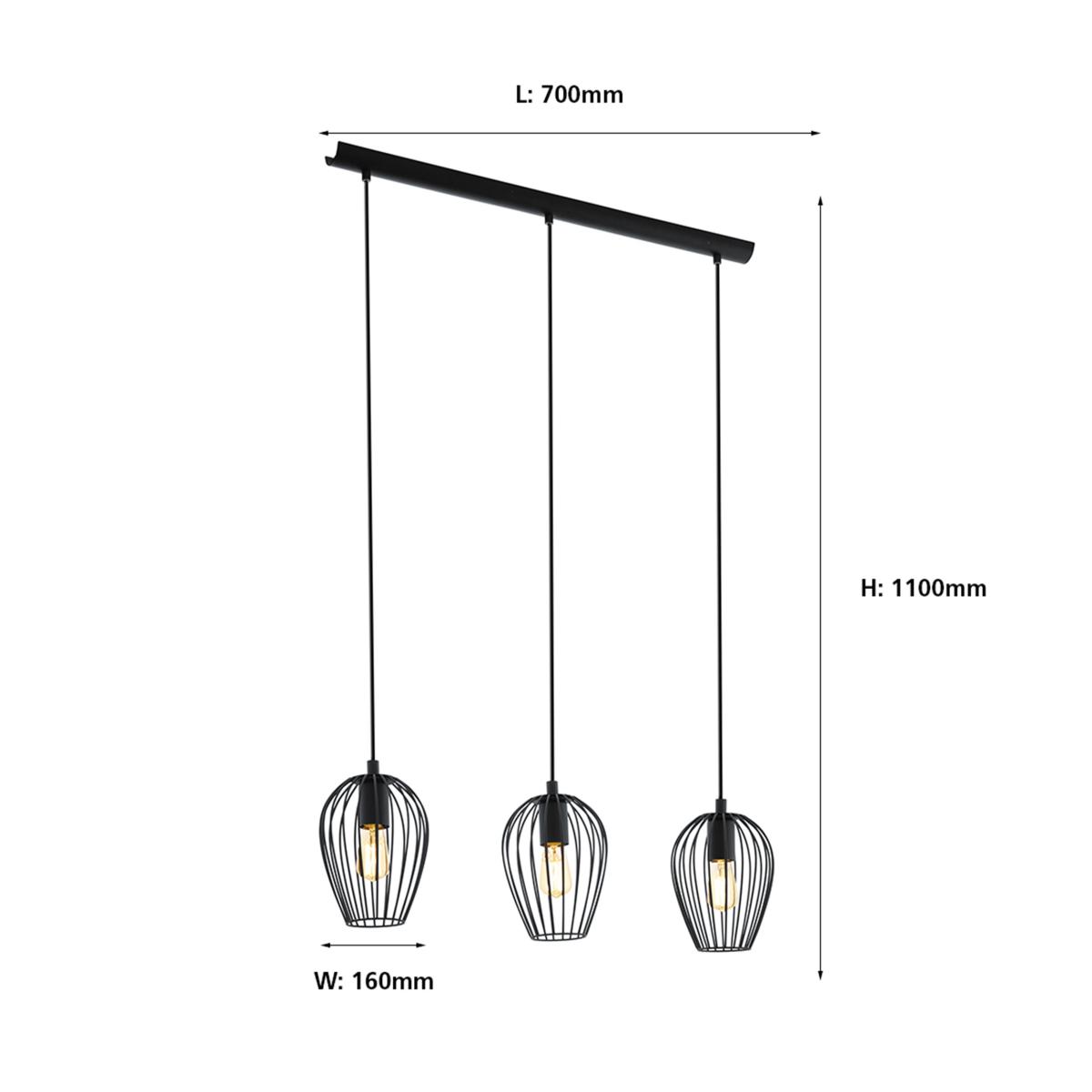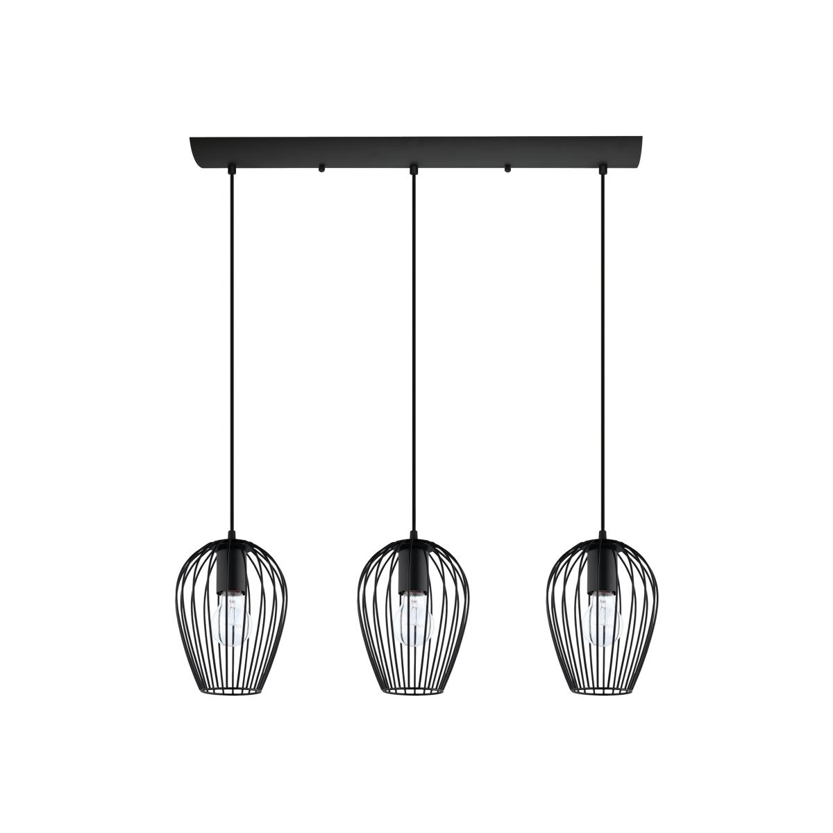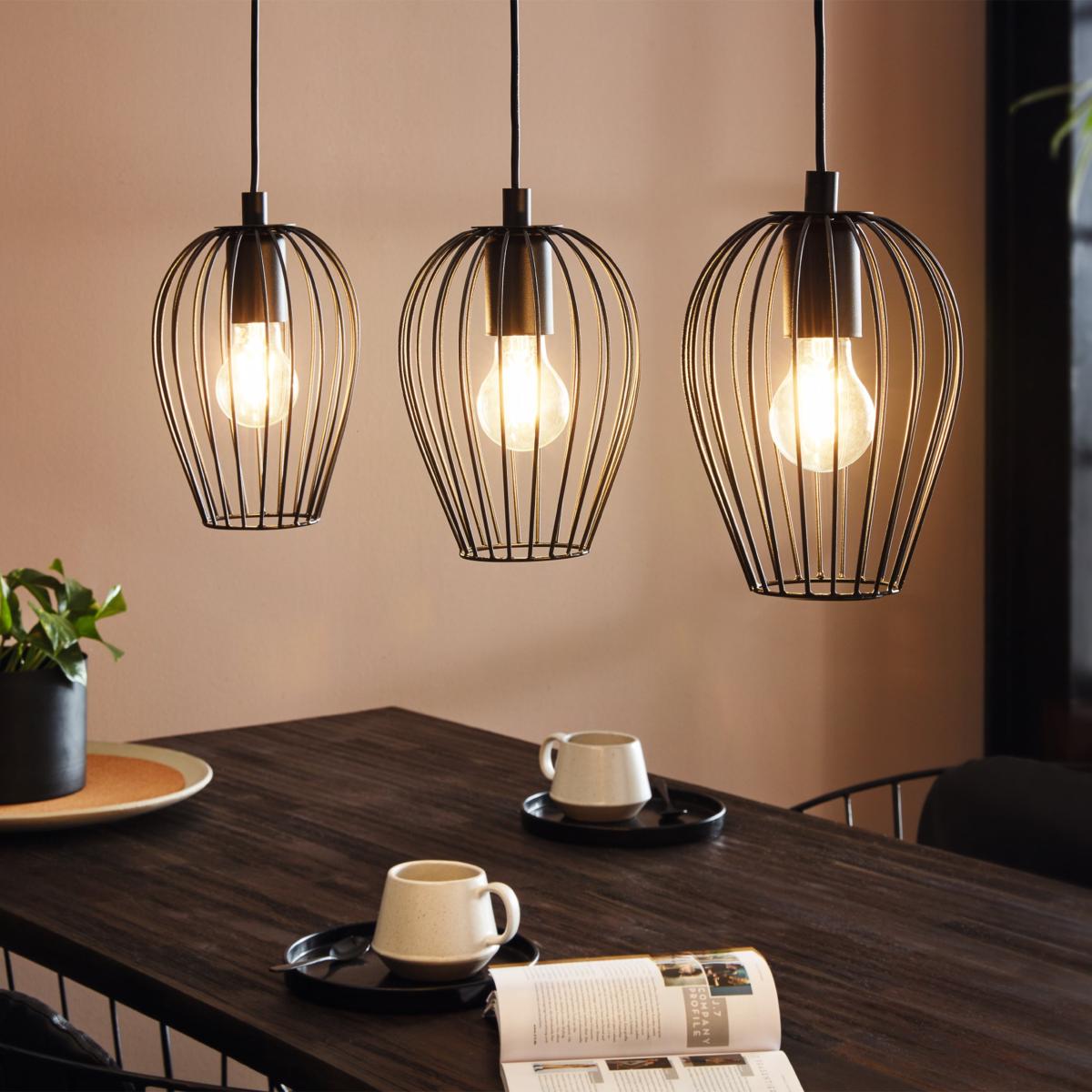 * Vintage, Industrial Inspired Design * Eye-Catching Wire Frame Look * Adjustable Heights - Tailored Ambience * Made from Durable Material * Requires: E27 Cap Types Meet your home's newest must-have - the Newtown Mid Century Industrial 3 Light Adjustable Diner Ceiling Light. It features three oval black-wire lampshades, suspended from a striking black metal canopy. Due to the unique and eye-catching wire-frame design, this piece creates a fascinating play of light and shadow when switched on. Able to seamlessly blend into a variety of interiors, Eglo's diner light would look perfect situated above your breakfast bar or dining table.