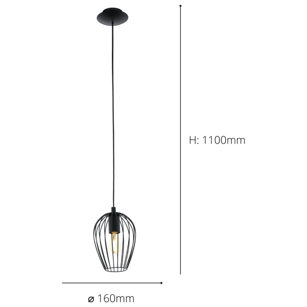 The Newtown is a single pendant with a vintage-inspired design. The fitting has a classic black finish with an open-cage teardrop shape shade. With its visible lumen style, the Newtown would compliment a large retro-style lightbulb for maximum impact. This style of pendant would look great hung over a dining room table or kitchen island and would compliment a minimalist, retro or contemporary interior styling. Dimensions: Size H110, W16, D110cm. Diameter 16cm. Adjustable drop. 10 - 110cm drop. Bulb Information: Bulbs required 1 x classic E27 edison screw (not included). Recommended maximum wattage: 60 watts. General Information: Steel. IP rating 20. Weight: 0.7kg. Minimal assembly. Product is hard-wired into electrics. This lighting product is a class 2 fitting. Manufacturer's 2 year guarantee.