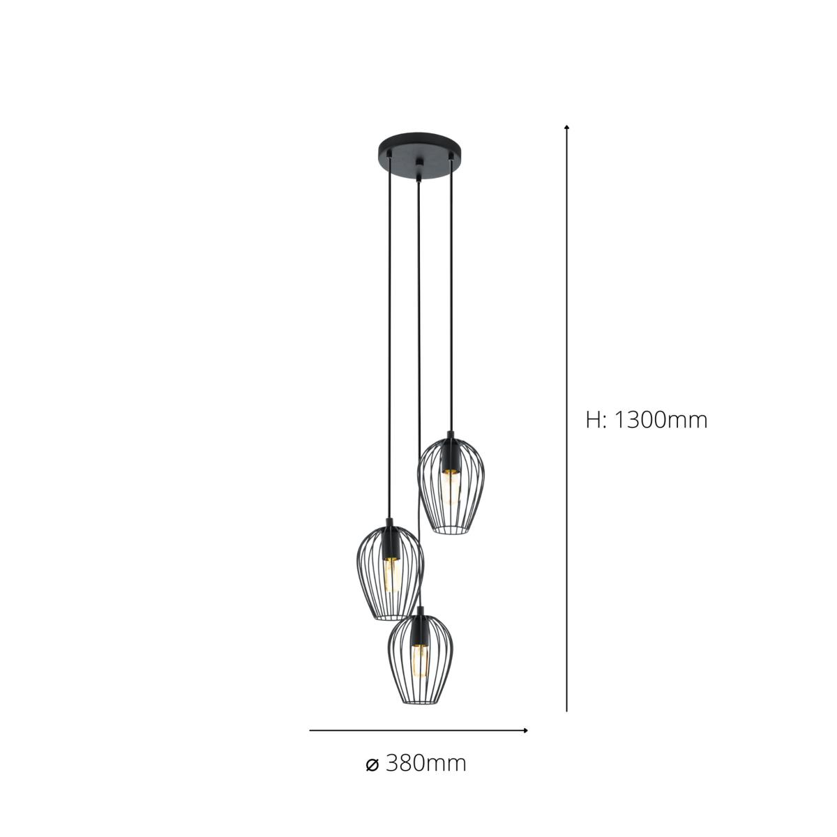 EGLO Newtown Vintage Caged Cluster Pendant Light Black