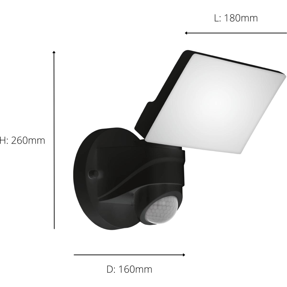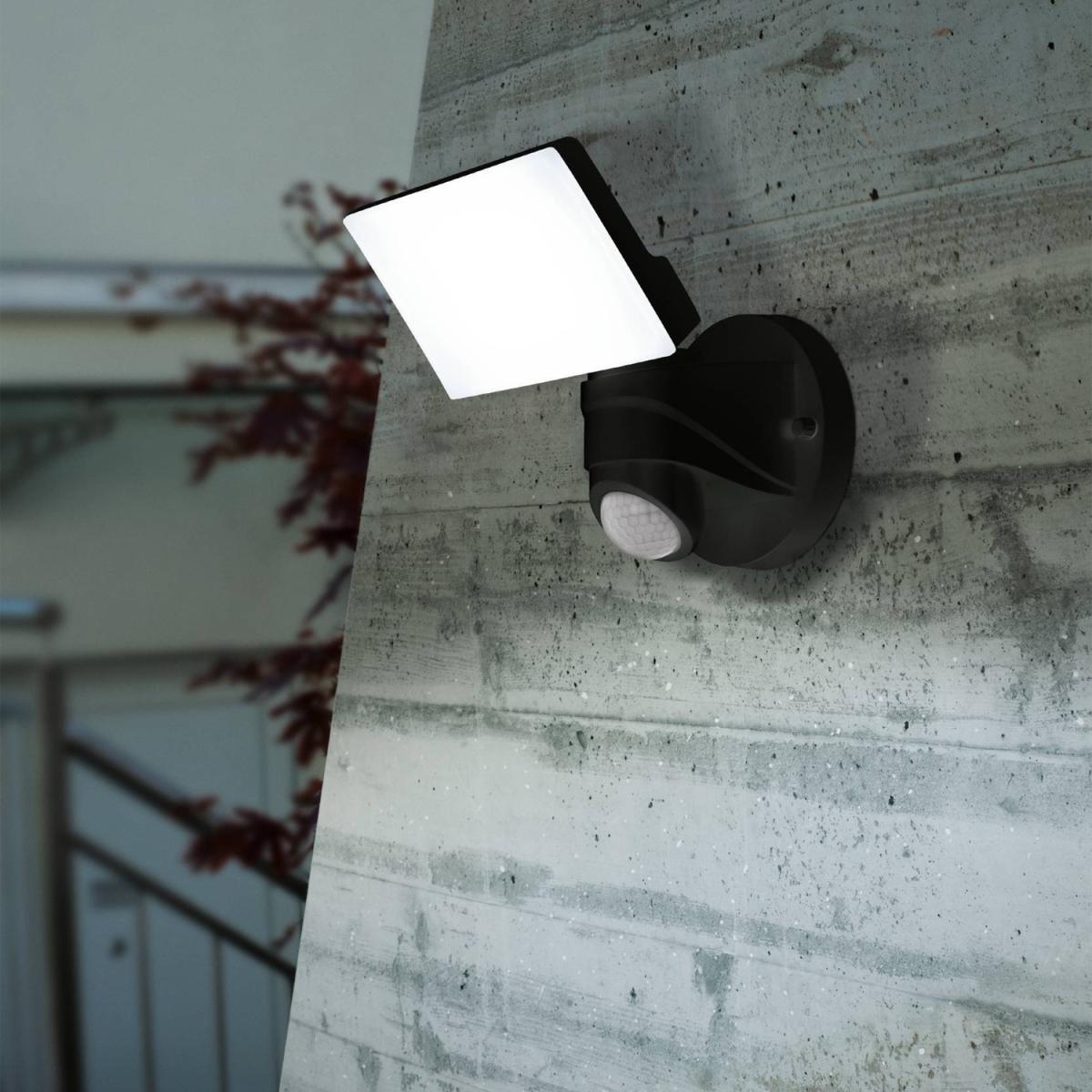 The PAGINO exterior LED wall spotlight has a black plastic body with an adjustable rectangular head. The LEDs behind the white plastic light panels produce a bright neutral white light. The wall light is fitted with a motion sensor and comes on automatically, lighting up poor visibility areas and deterring unwanted visitors. The integrated twilight sensor gauges the ambient light level, so the light only switches on when needed. The product is suitable for outdoor use due to its IP44 protection against spray water. The spotlight can pivot right, left, up and down to provide targeted, secure and reliable outdoor illumination, whether providing lighting to the area around your property, the entrance to your house or your garage.