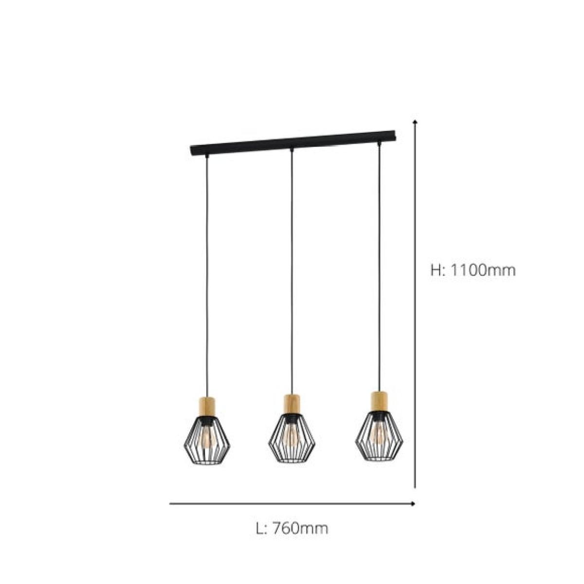 * Contemporary design with a wooden beam * Requires 3 x E27 Bulbs (not included) This three-light pendant lamp will add a sophisticated touch to your home, blending contemporary design with natural elements. It features a sleek, elongated wooden beam that exudes an inviting and stylish appeal. The contrasting combination of rich wood and matte metal creates a timeless aesthetic, seamlessly complementing a variety of interior styles.