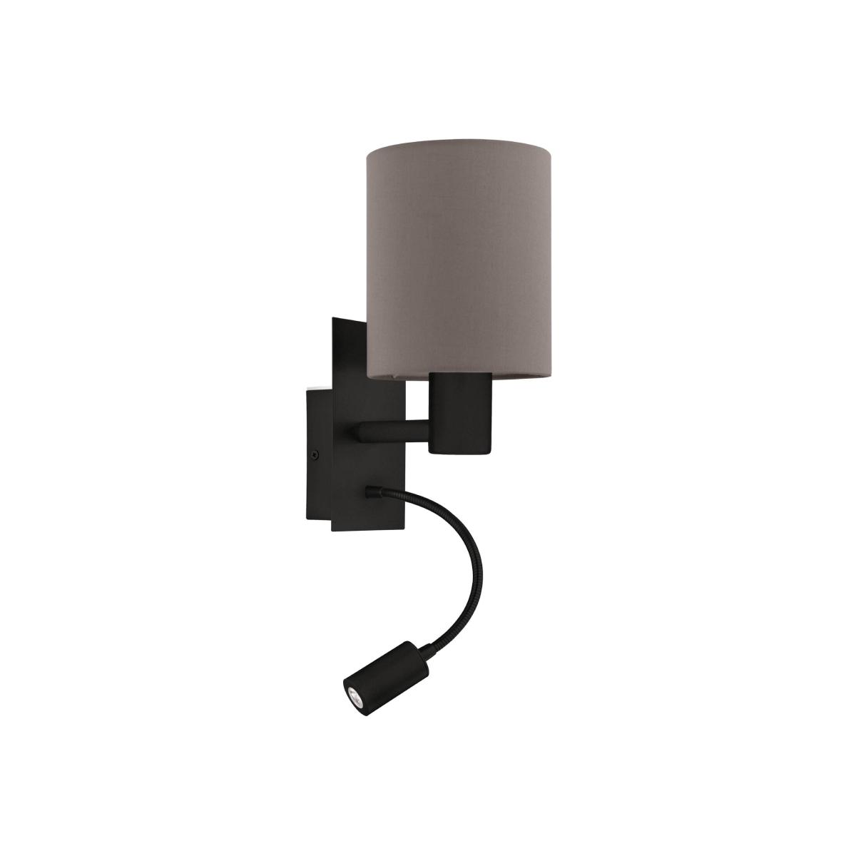 The PASTERI wall light features a black metal wall mount and a cylindrical fabric lampshade with an anthracite brown finish. The wall light has an adjustable reading light, which produces a pleasant warm white light once illuminated, providing focused lighting perfect for reading. With its simple design, the product blends seamlessly with almost any interior trend and will complement existing home decor. The wall light can switch on and off easily using the rocker switch on the body. Whether in the bedroom or living room, the light boasts form and function, providing cosy lighting for your living space. The lightbulb is not included. The product has an E27 lamp holder and requires an E27 lightbulb.
