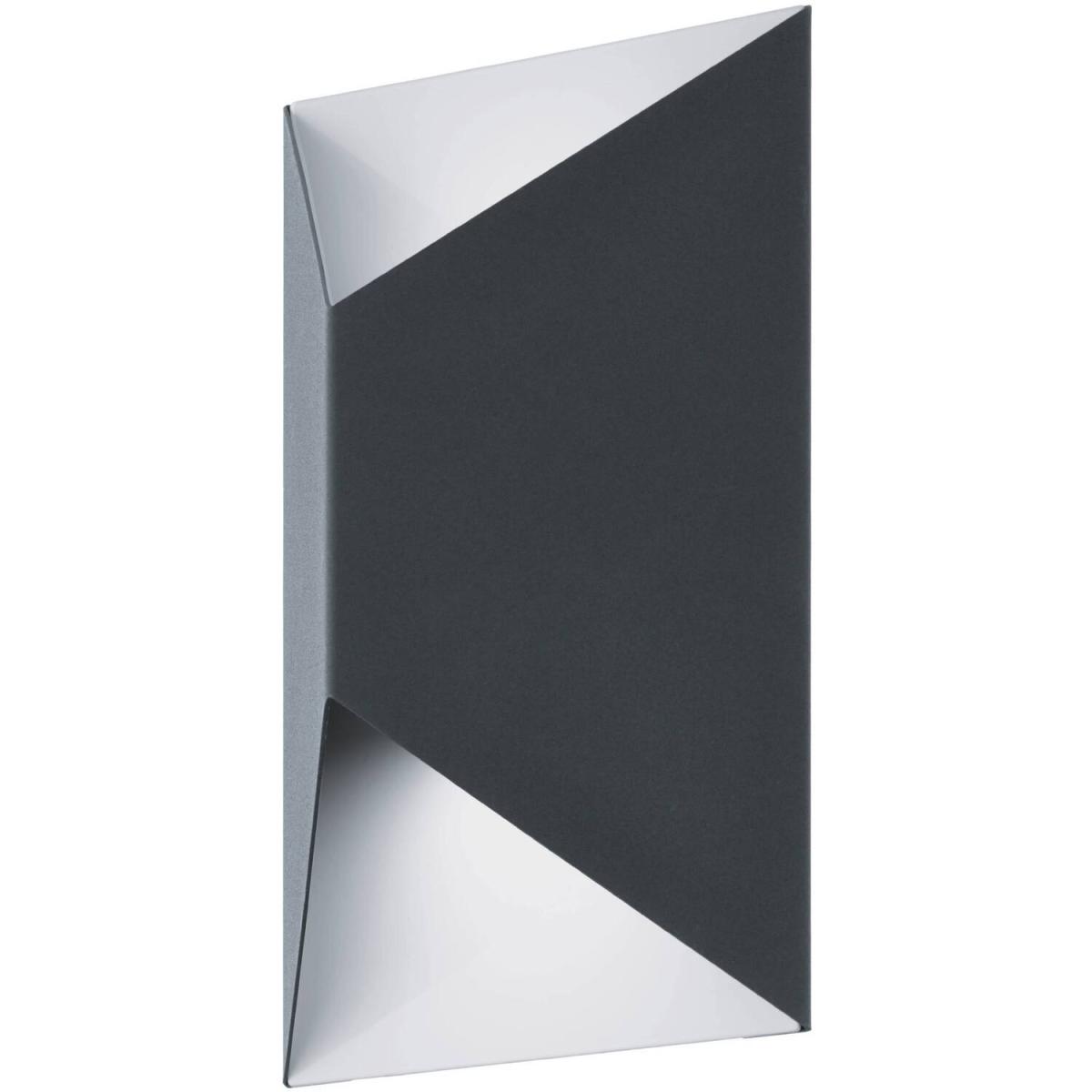 The Predazzo is an ultra-sleek exterior wall lamp that is able to be corner mounted. The product has a rectangular style with an angular design in contrasting anthracite and white zinc-plated steel. The product has an IP44 rating and durable steel finish to ensure it is an appropriate and stylish choice for exterior lighting. The product utilises LED components that are replaceable and produces a pleasant warm white light when illuminated, perfect for highlighting a pathway or doorway.