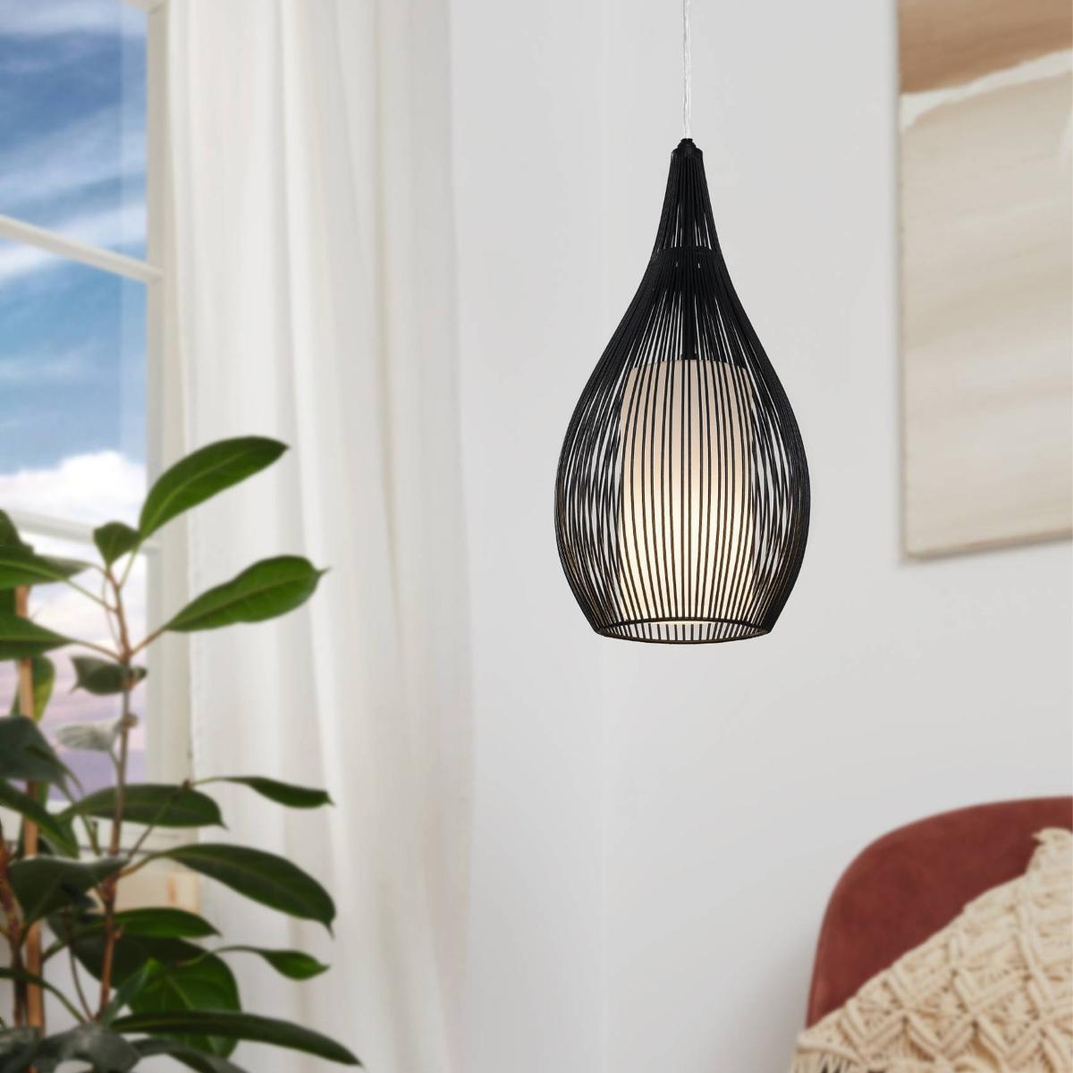 * Eye-Catching Look & Design * Adjustable Height - Tailored Ambience * Made from Durable Materials * Requires E27 Cap Type Beautify your home with the EGLO Razoni Teardrop Adjustable Pendant Light, which features a black, rounded wire shade surrounding an inner white glass cylinder. With its unique and eye-catching design, the lampshade creates a fascinating play of light and shadow when the light is switched on.