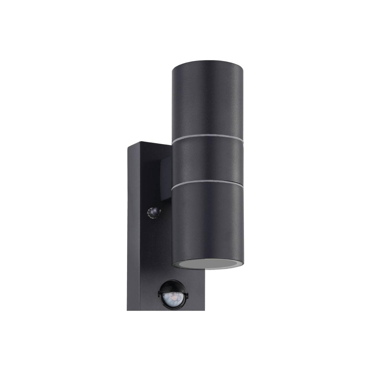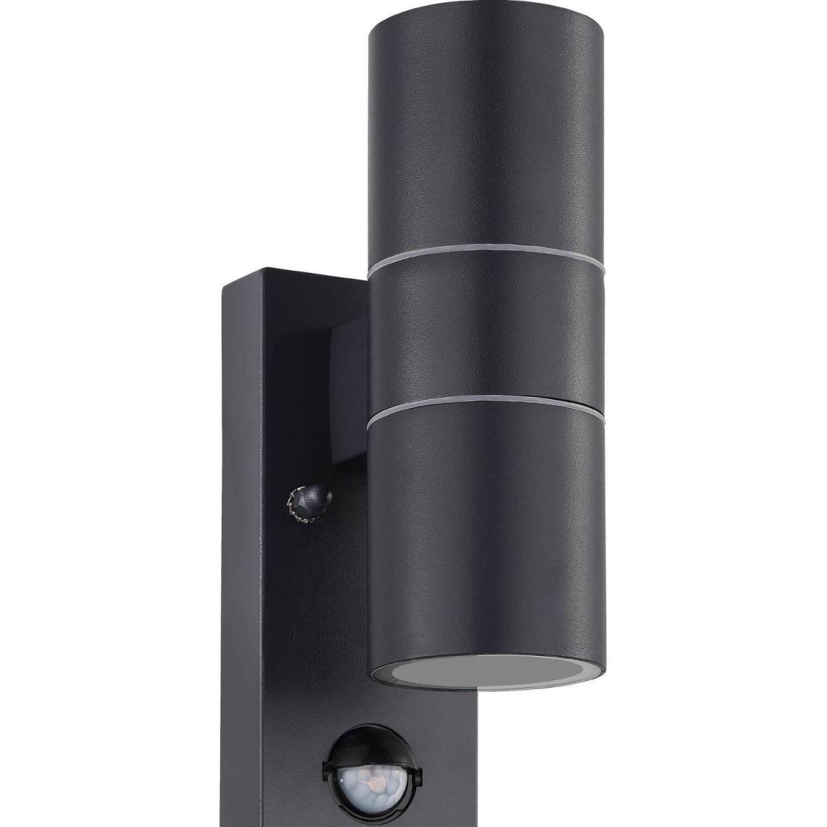 The Riga 5 is a slim cylindrical exterior wall light in an anthracite zinc-plated steel finish. The Riga 5 has dual light sources and comes supplied with 2 x GU10-LED illuminants that produce a warm white light when illuminated. The Riga 5 has the ability to be corner mounted and has an IP44 rating, perfect for outdoor use. The fitting has an integrated sensor with an angle of up to 100 and a distance of up to 6 metres.